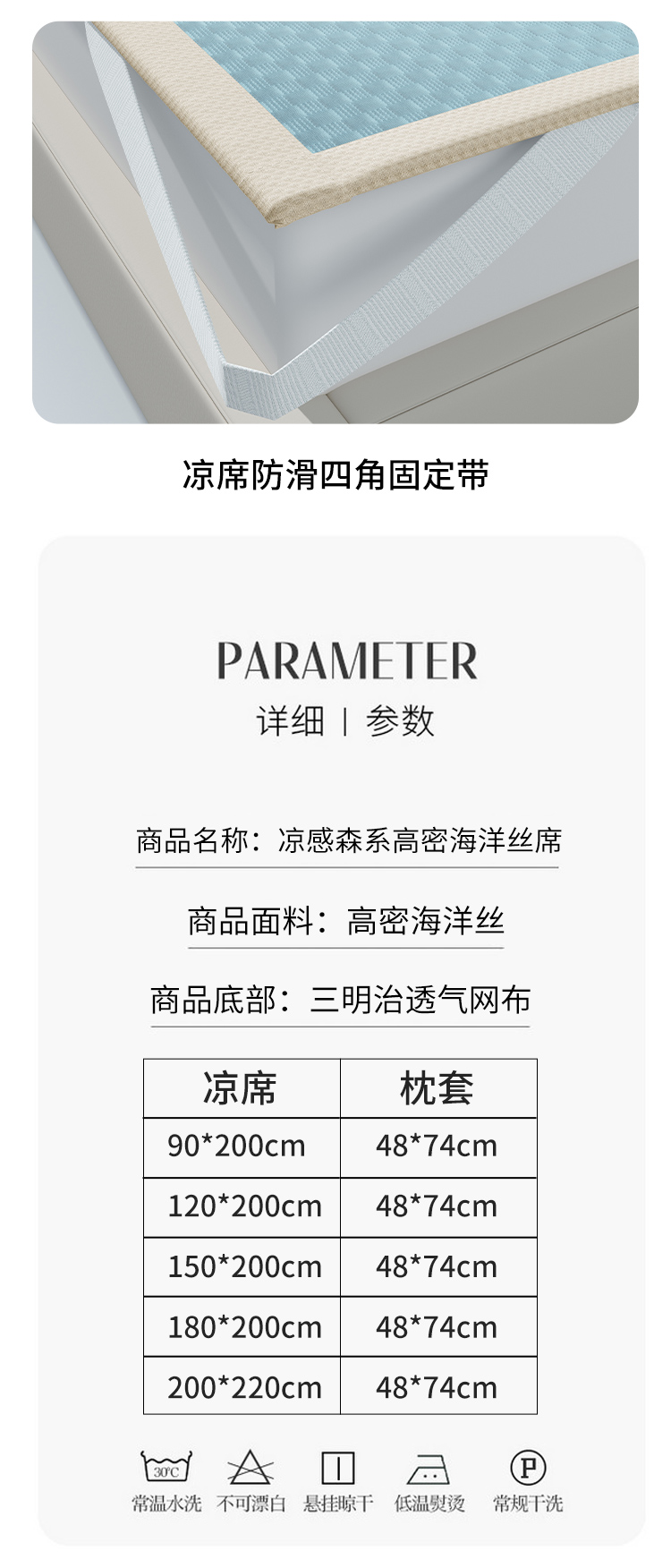 (总)曼陀罗 2026新款凉感海洋丝冰咖条纹凉席-床笠款,冰川灰,天之蓝,草原绿,粉黛玉,海之蓝