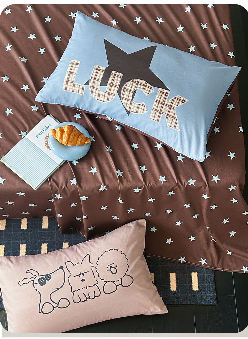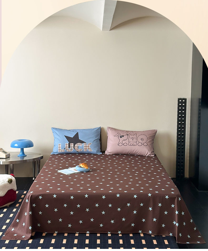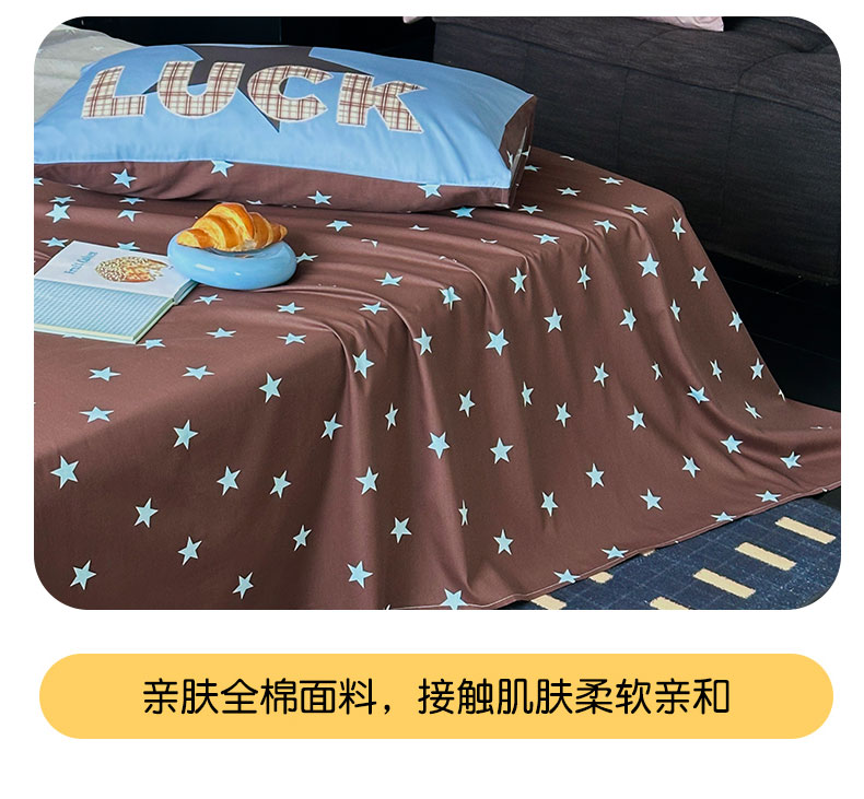 当前位置: 91家纺网 > 商品网购 > 床上用品 > 床单 > 桃子家居 2026新款A类全棉纯棉水洗简约混搭数码印花条纹星纹复古治愈卡通单品床单床笠系列 水洗棉单品床单-棕星汪星人