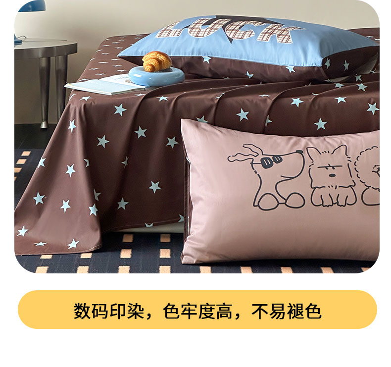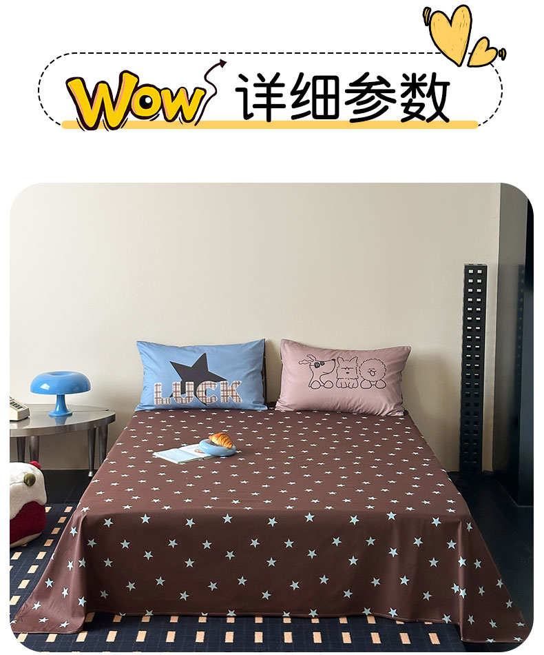 • 91家纺网 家纺一手货源 找家纺 桃子家居 2026新款A类全棉纯棉水洗简约混搭数码印花条纹星纹复古治愈卡通单品床单床笠系列 水洗棉单品床单-棕星汪星人