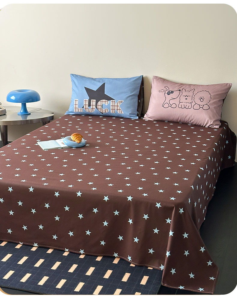 桃子家居 2026新款A类全棉纯棉水洗简约混搭数码印花条纹星纹复古治愈卡通单品床单床笠系列 水洗棉单品床单-棕星汪星人