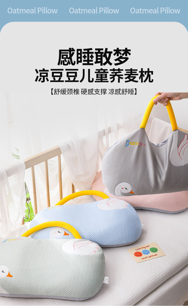 商品名称:(总)仁宇枕业 2026新款婴幼儿夏季冰豆豆凉豆豆儿童白天鹅系列荞麦枕头枕芯