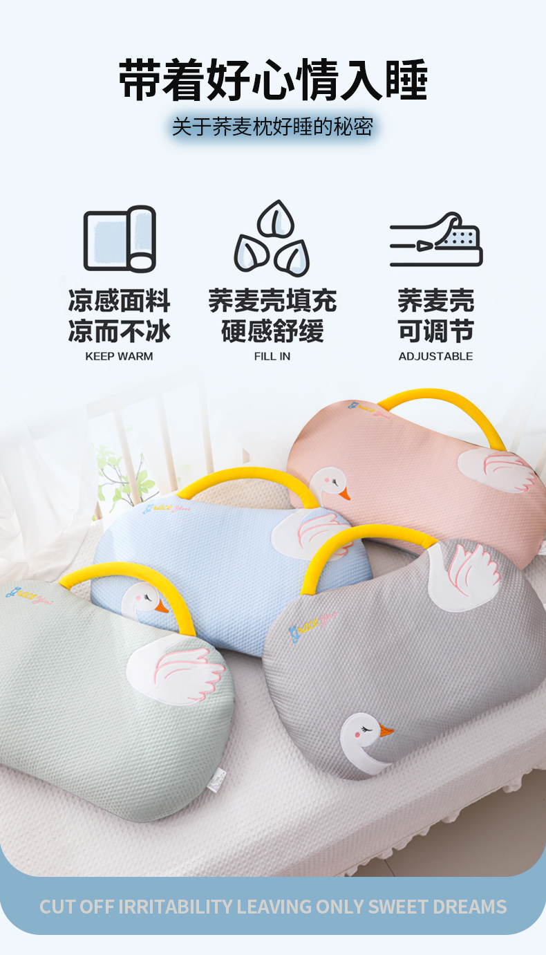 (总)仁宇枕业 2026新款婴幼儿夏季冰豆豆凉豆豆儿童白天鹅系列荞麦枕头枕芯