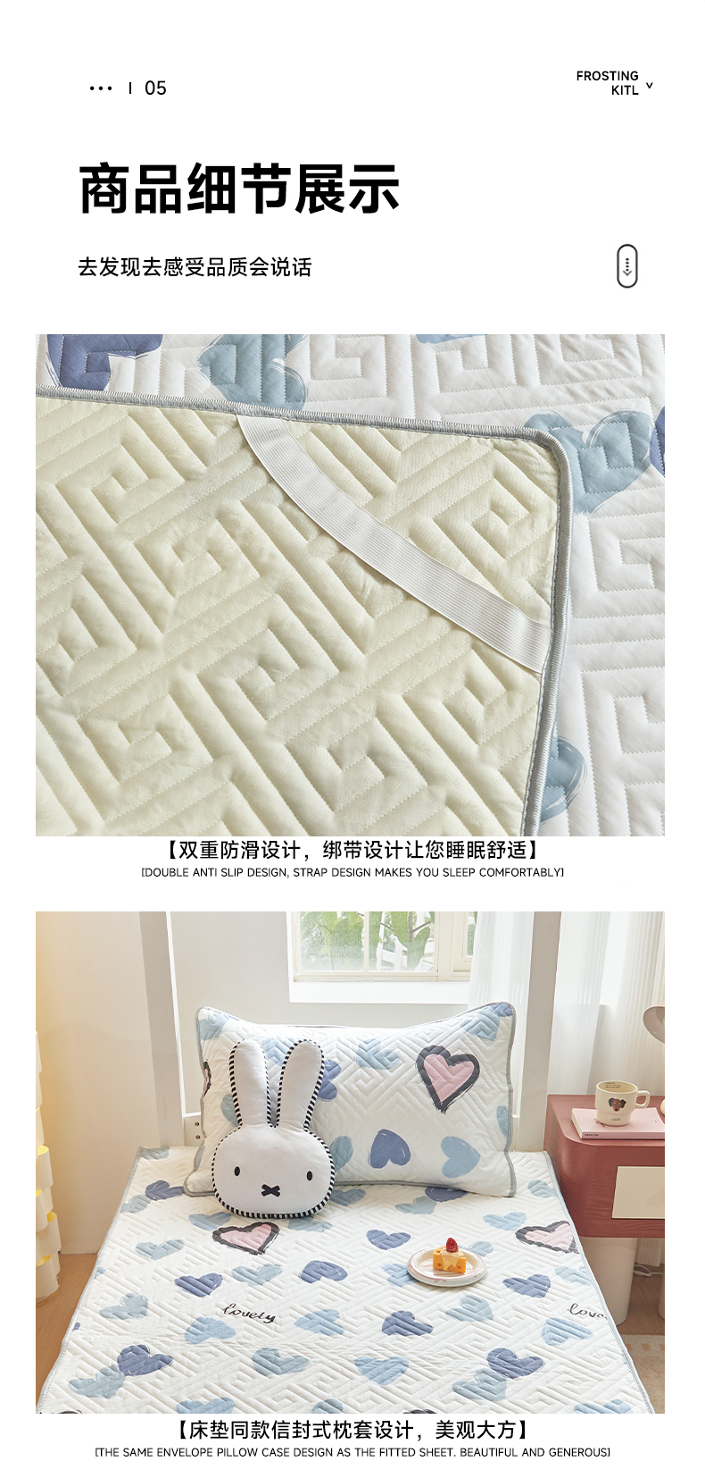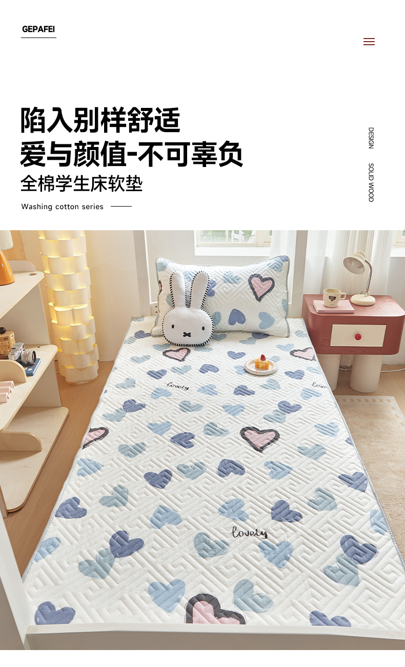 • 91家纺网 家纺一手货源 找家纺 舒居家纺 2026新款学生床全棉软床垫床盖 心心颜颜
