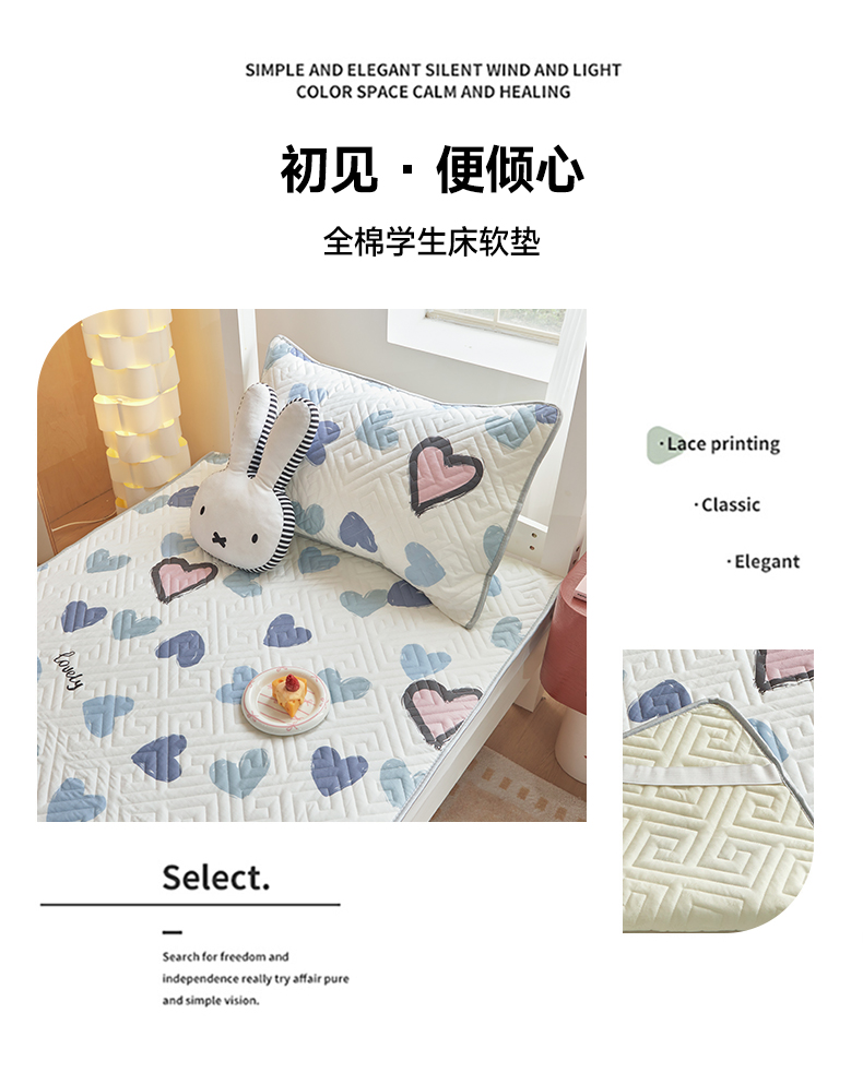 当前位置: 91家纺网 > 商品网购 > 床上用品 > 床盖 > 舒居家纺 2026新款学生床全棉软床垫床盖 心心颜颜