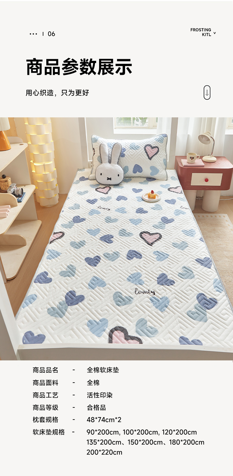 (总)舒居家纺 2026新款学生床全棉软床垫床盖,围脖狗狗,萌萌心语,熊猫彩绘,糕点熊,百合兔草绿,嘉年华,魔法精灵,卡哇伊,飞天萝卜,浮云初梦,海洋之心,酷比狗,南瓜派,生日熊,唐顿庄园,微笑草莓,小兔可可,心心颜颜,熊猫宝贝,月之心,叠拍