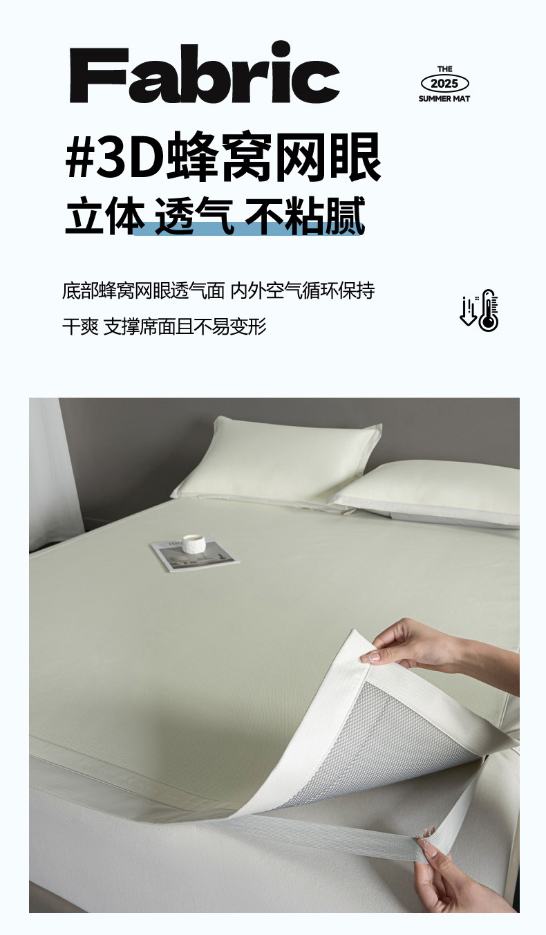 (总)印季 2025新款凉感系列-华夫格凉感丝软席,墨绿,浅粉,米黄,藏蓝,银灰