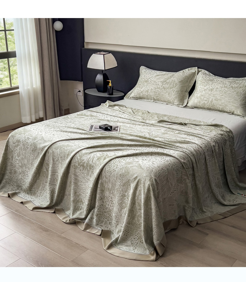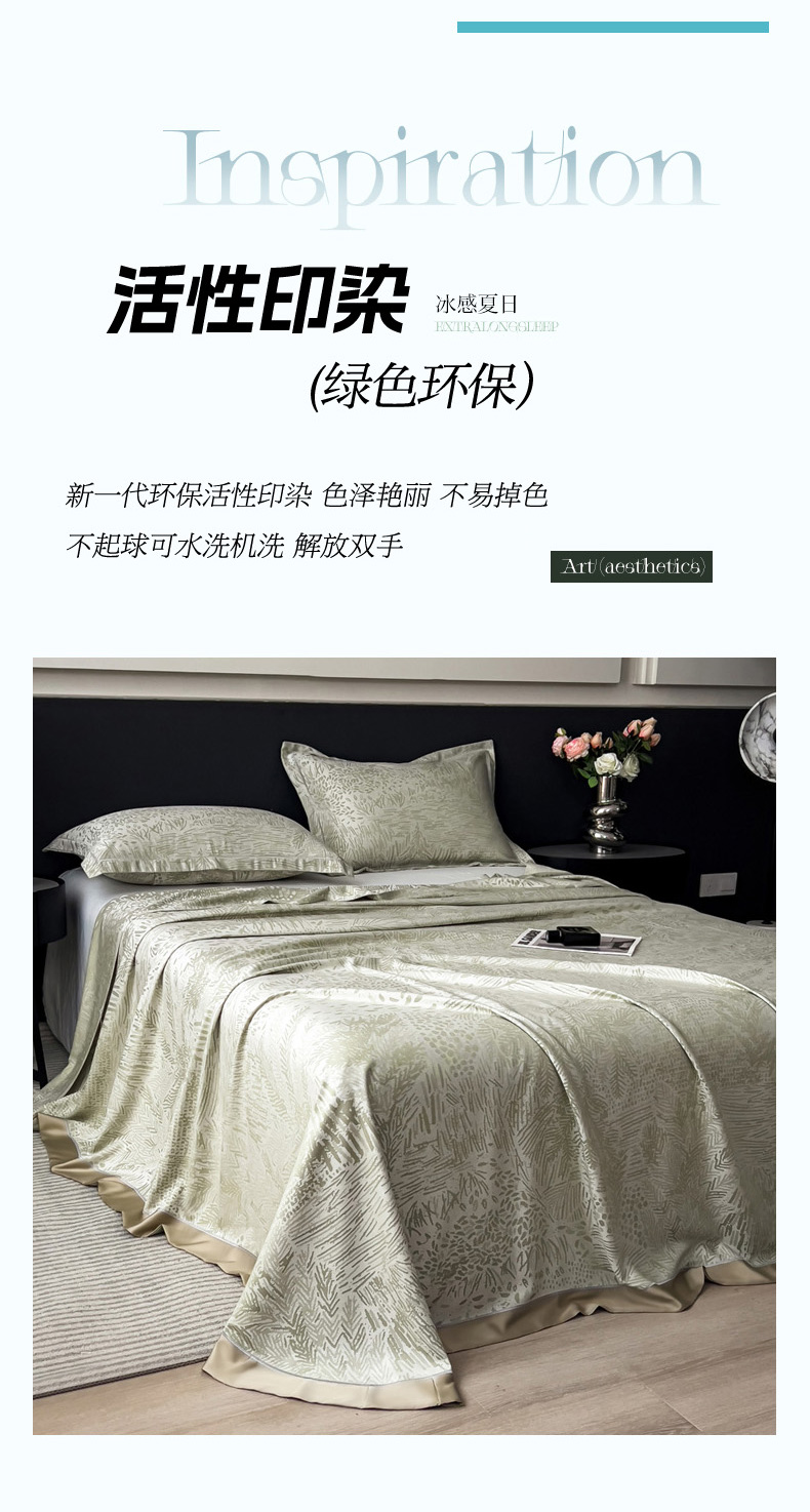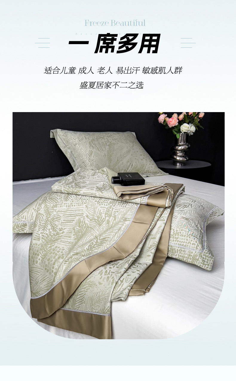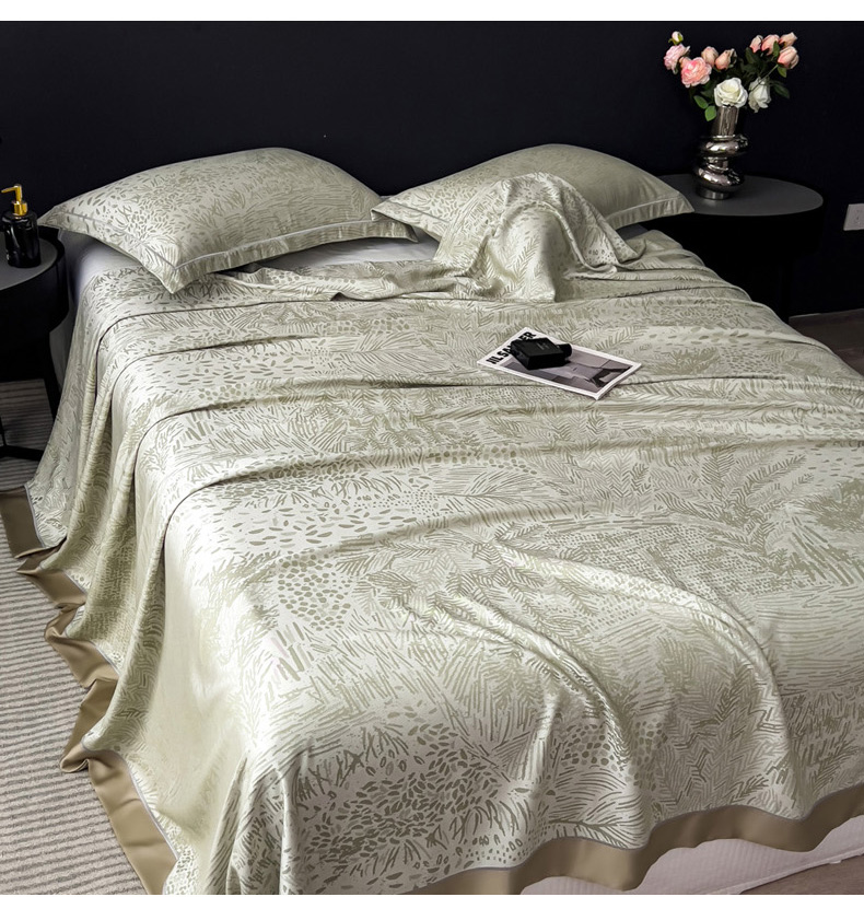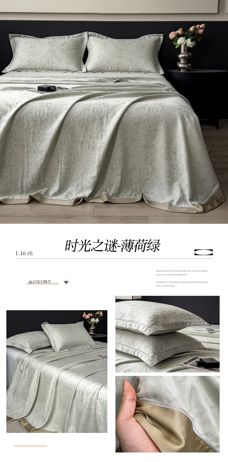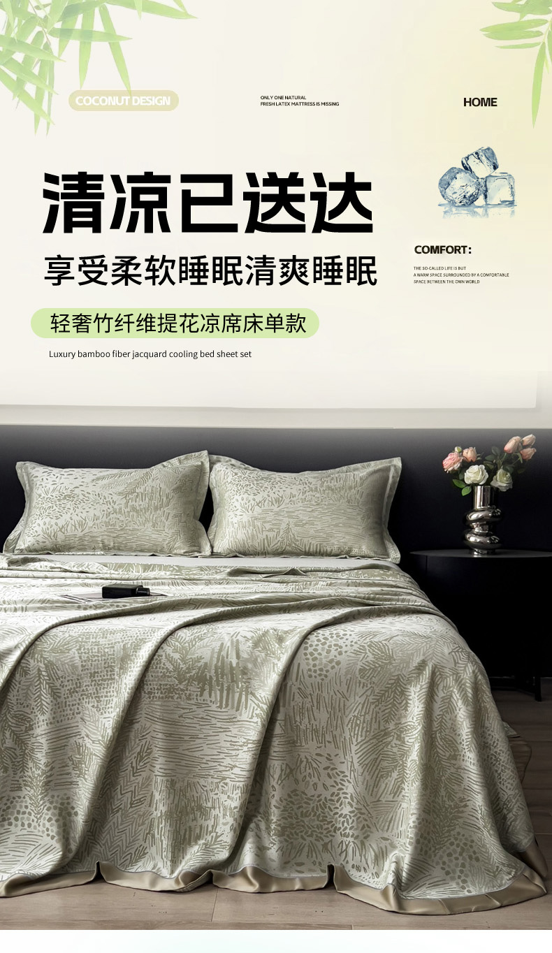 印季家纺 2026新款色织提花100%竹纤维床单凉席 素叶浅吟-薄荷绿