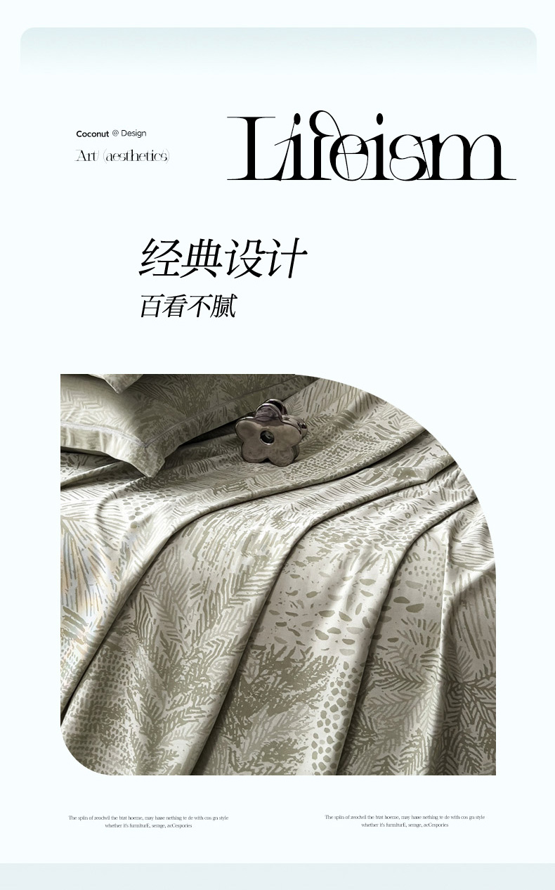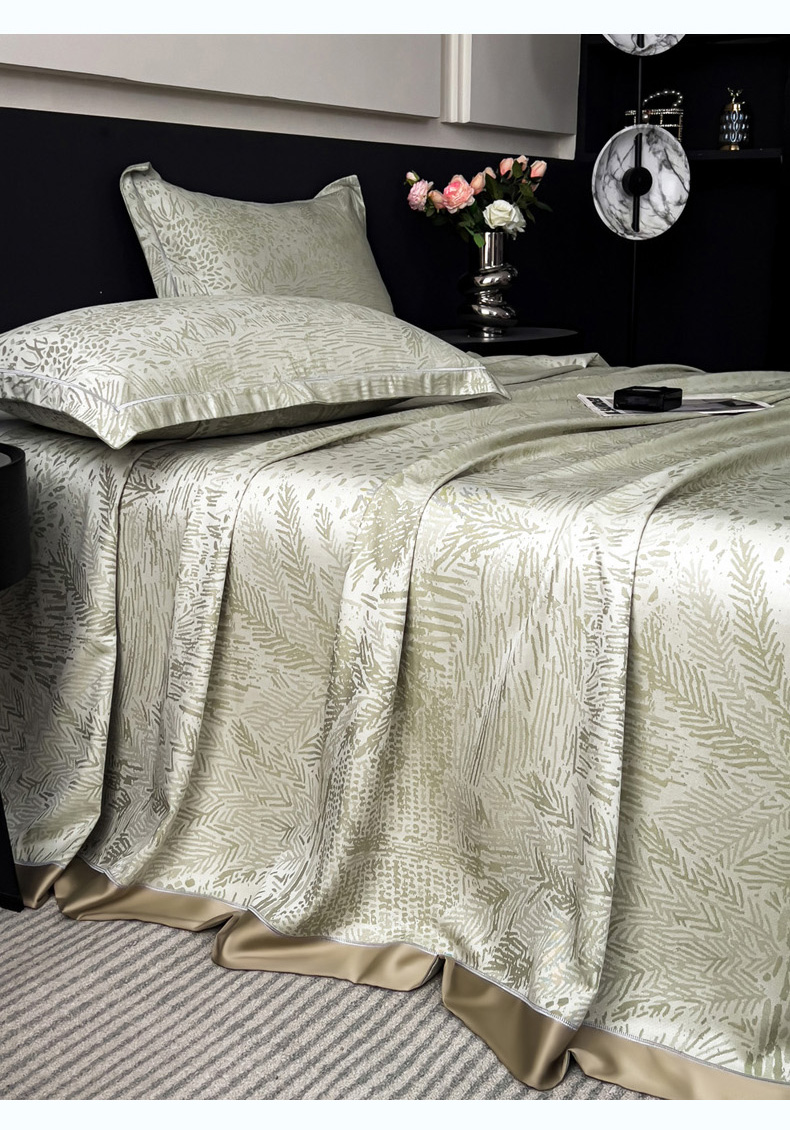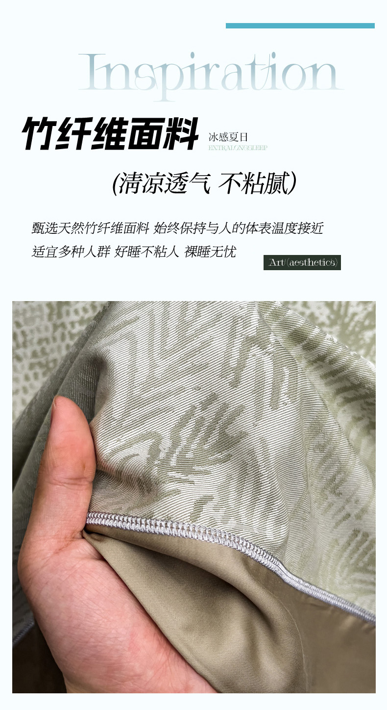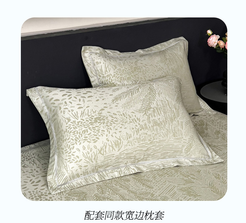 商品名称:印季家纺 2026新款色织提花100%竹纤维床单凉席 素叶浅吟-薄荷绿