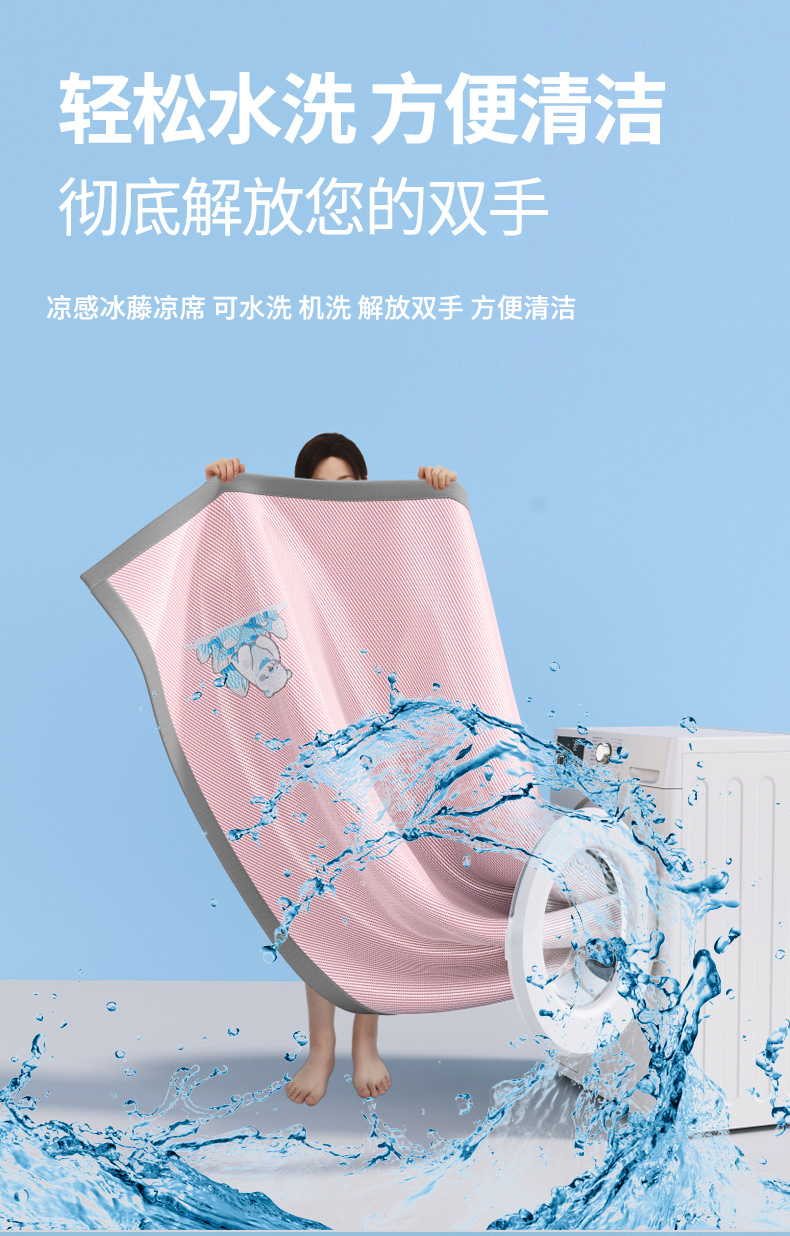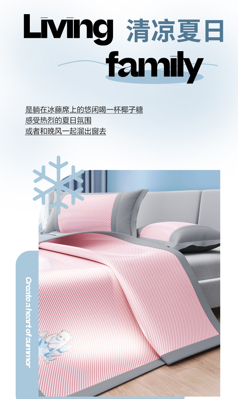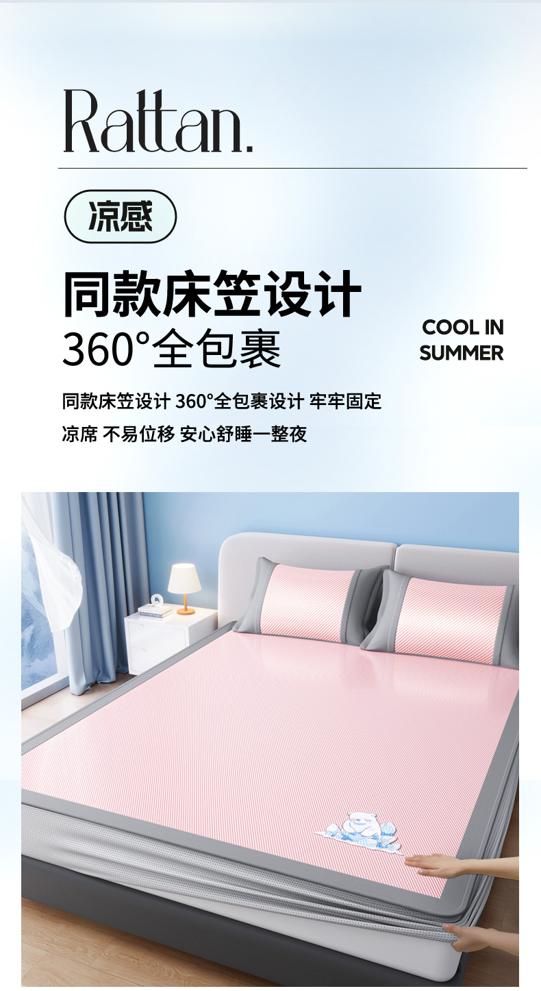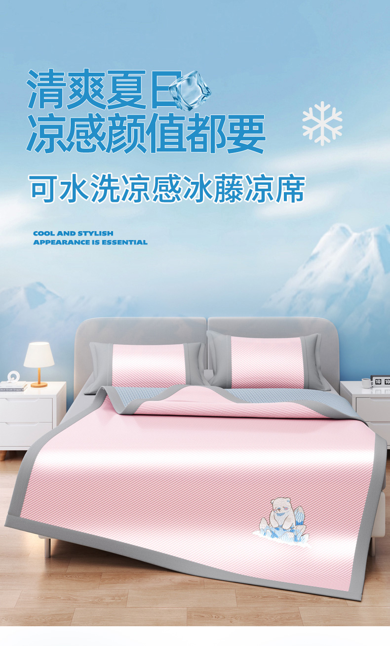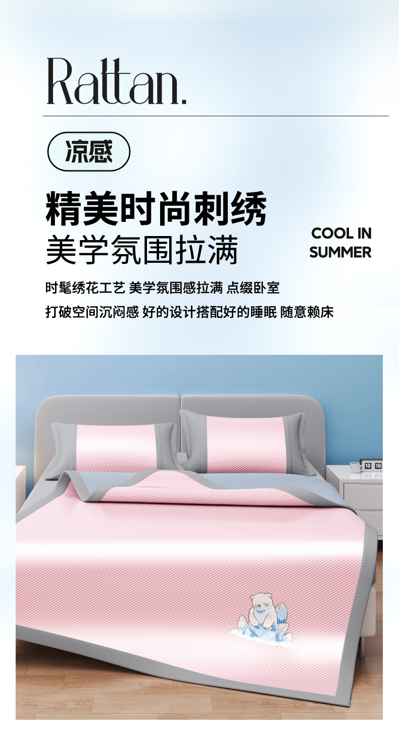 (总)印季家纺 2026新款可机洗席面绣花冰藤席凉席席子-北极熊