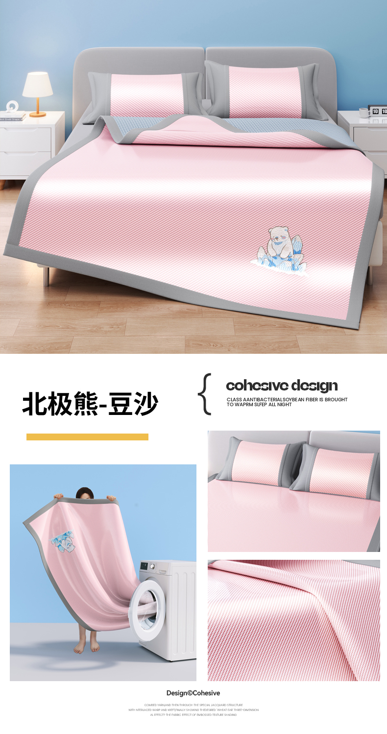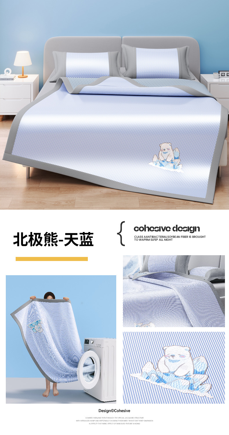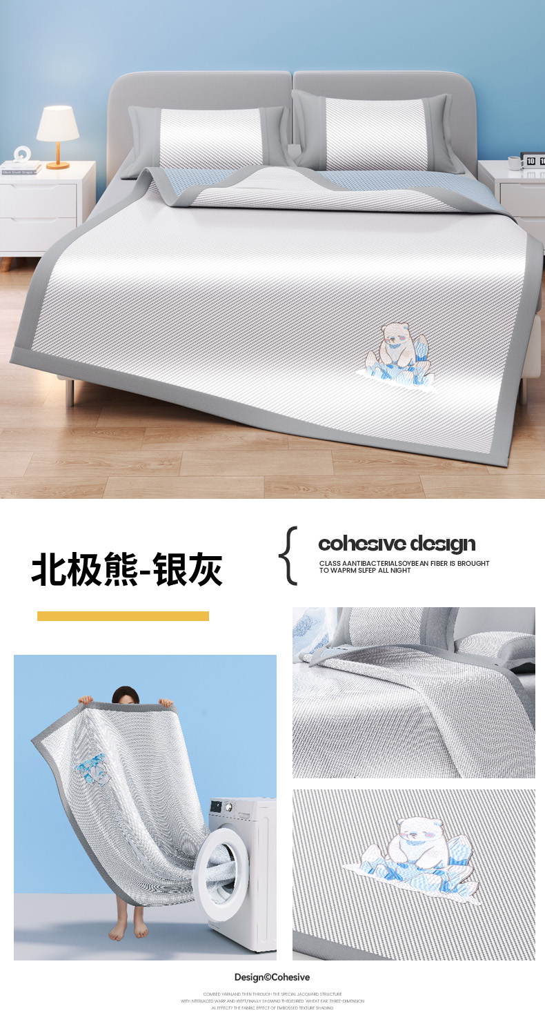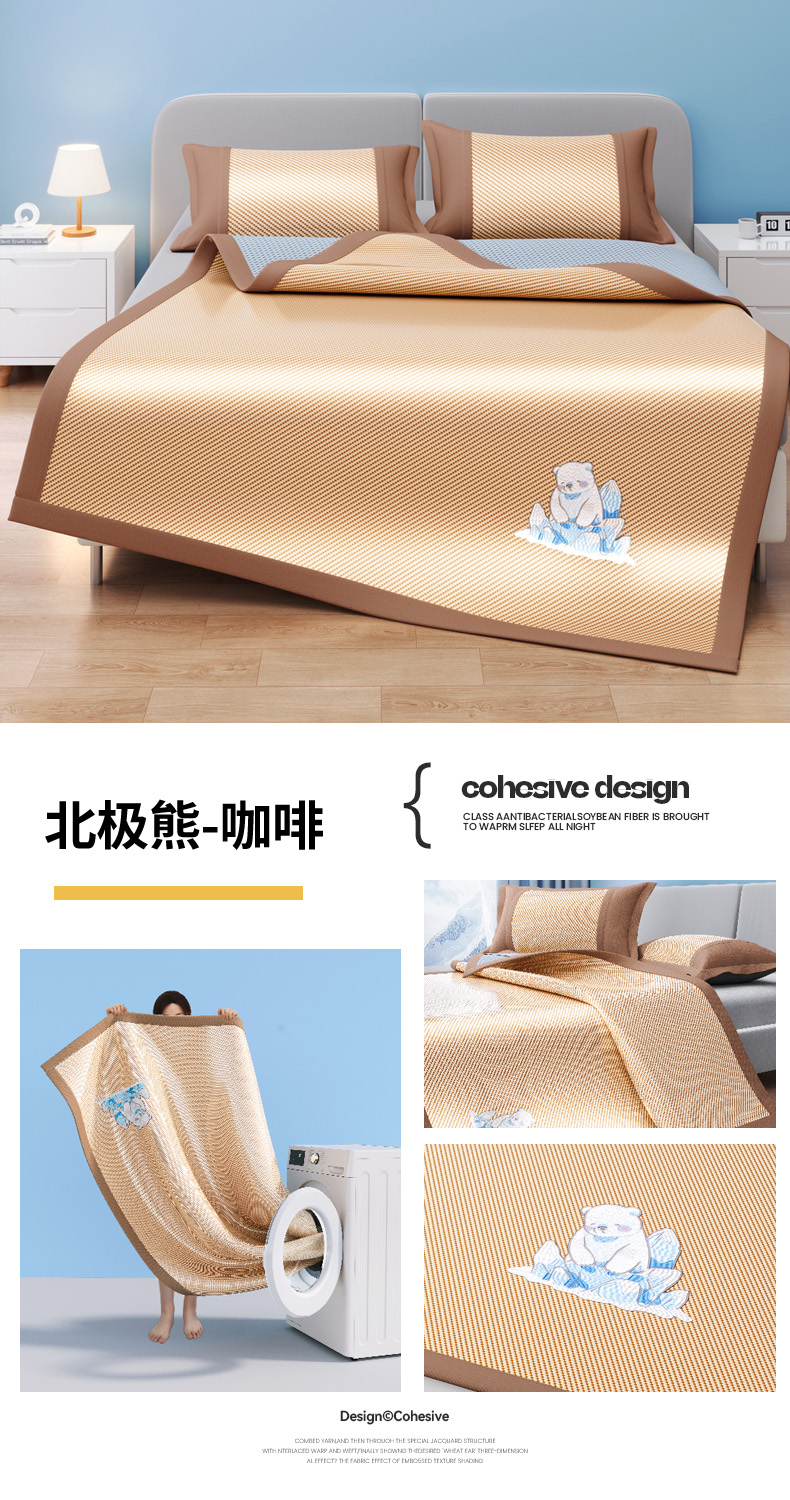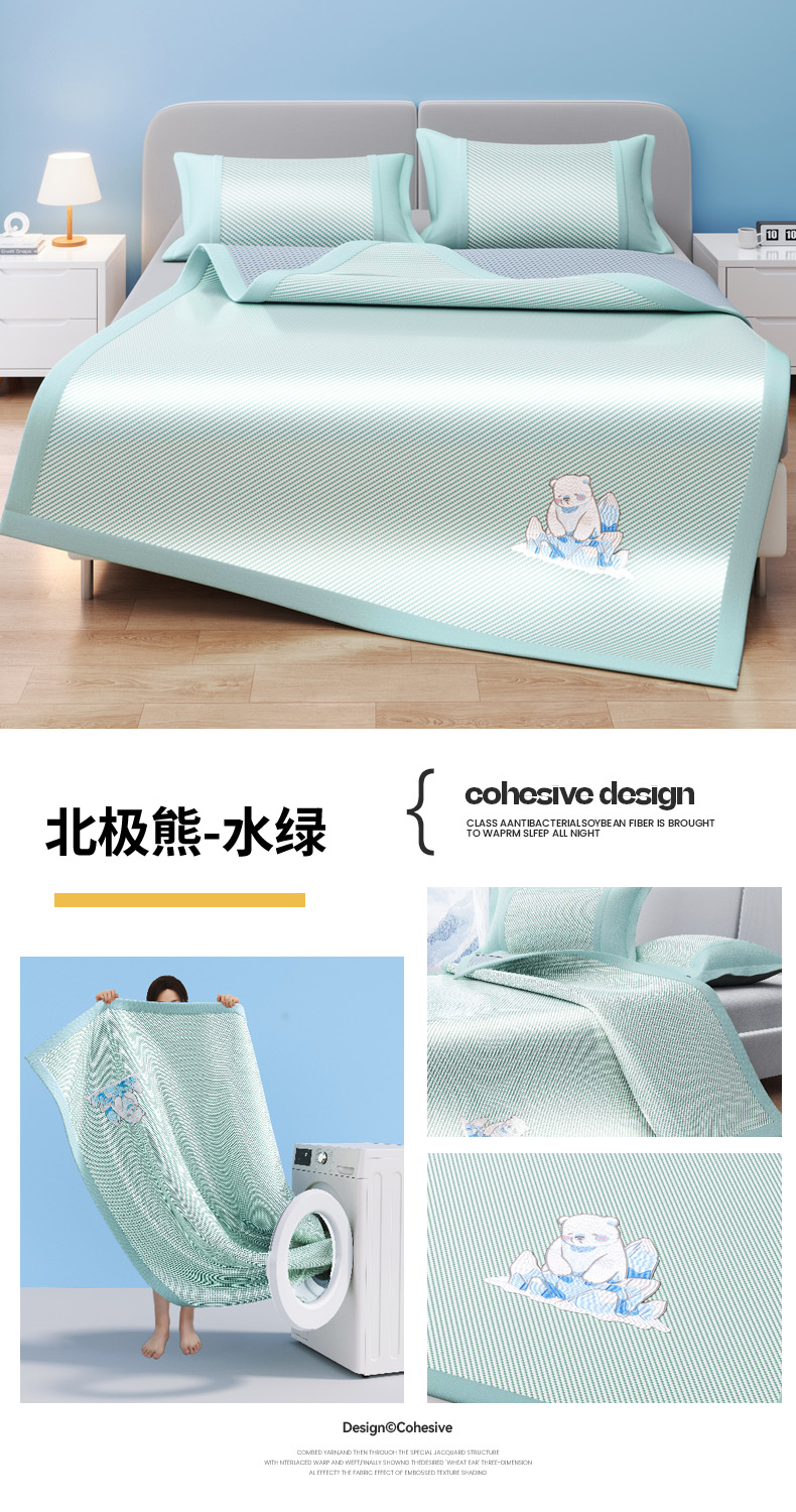 商品名称:(总)印季家纺 2026新款可机洗席面绣花冰藤席凉席席子-北极熊