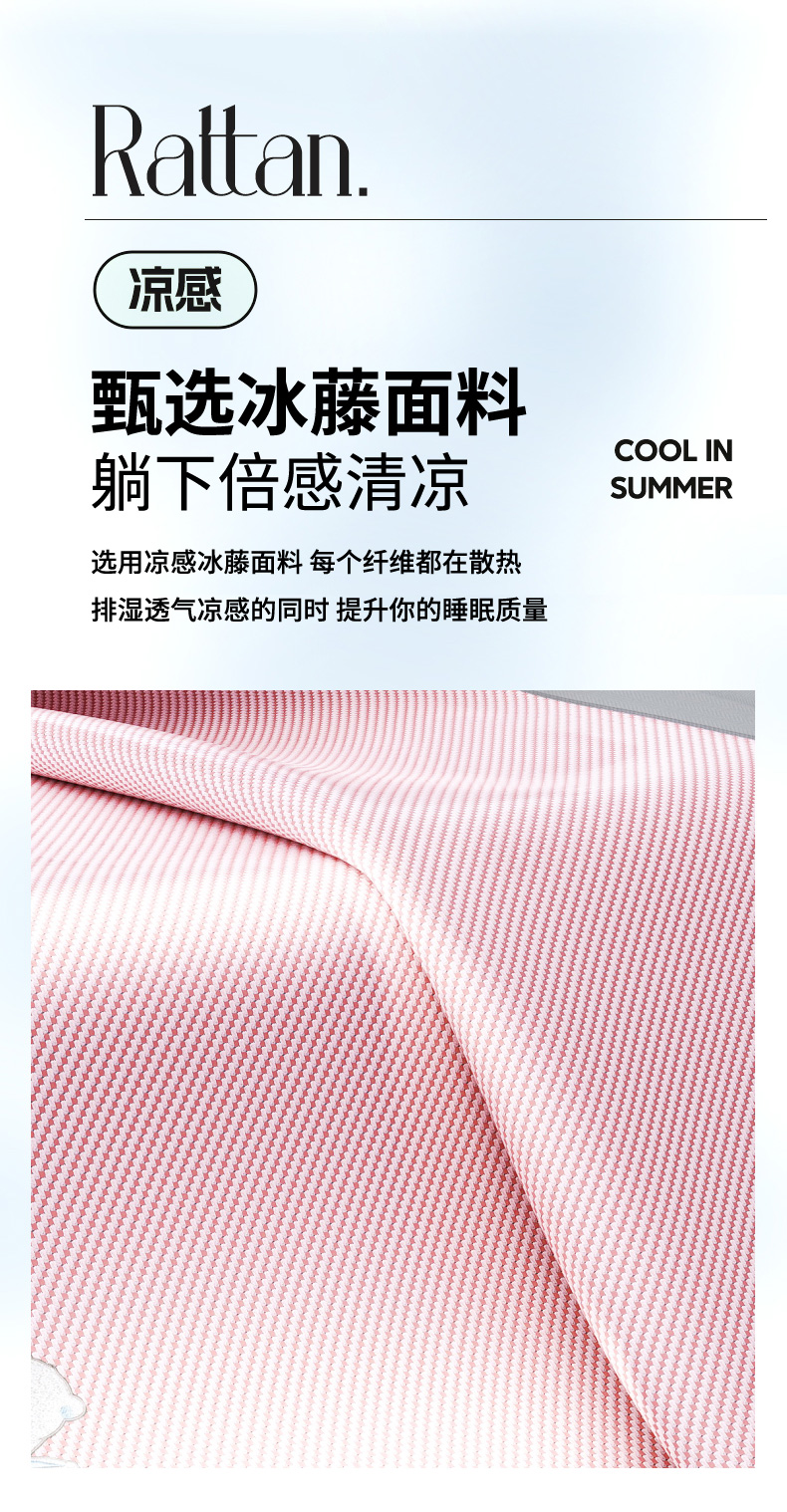 (总)印季家纺 2025新款纯色加密冰藤床裙凉席,粉色,灰色,咖啡,浅紫,水绿,天蓝