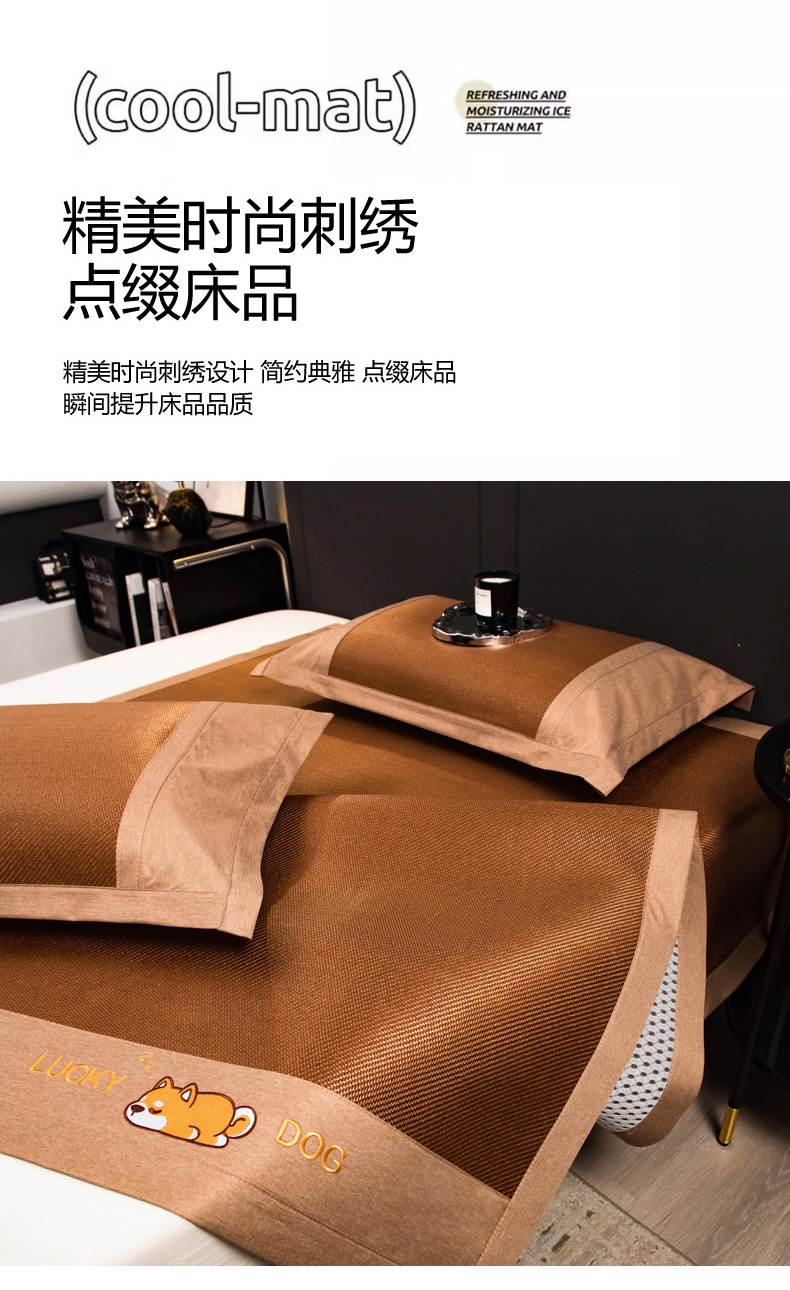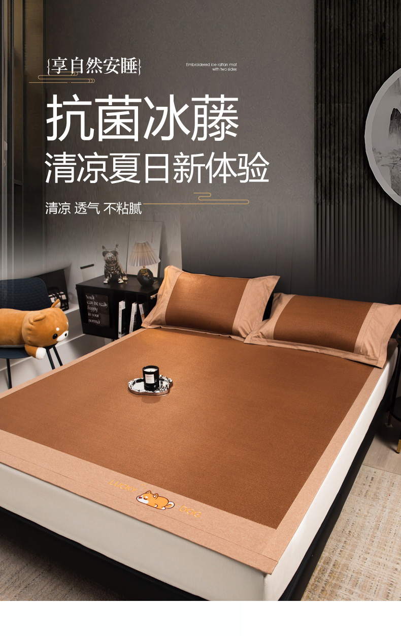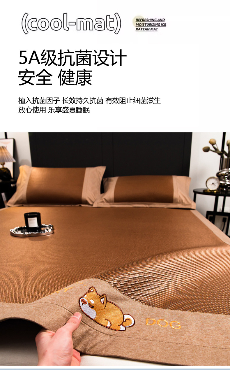当前位置: 91家纺网 > 商品网购 > 床上用品 > 凉席 > 其他凉席 > 印季家纺 2026新款5A级抗菌加厚绣花冰藤席-幸运狗(床席款) 金咖