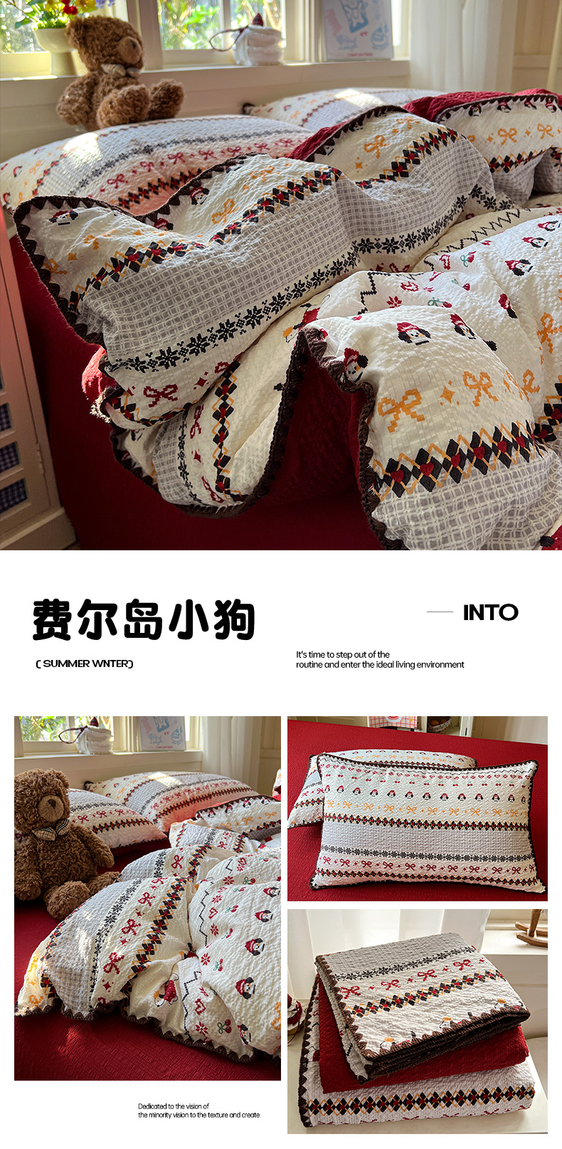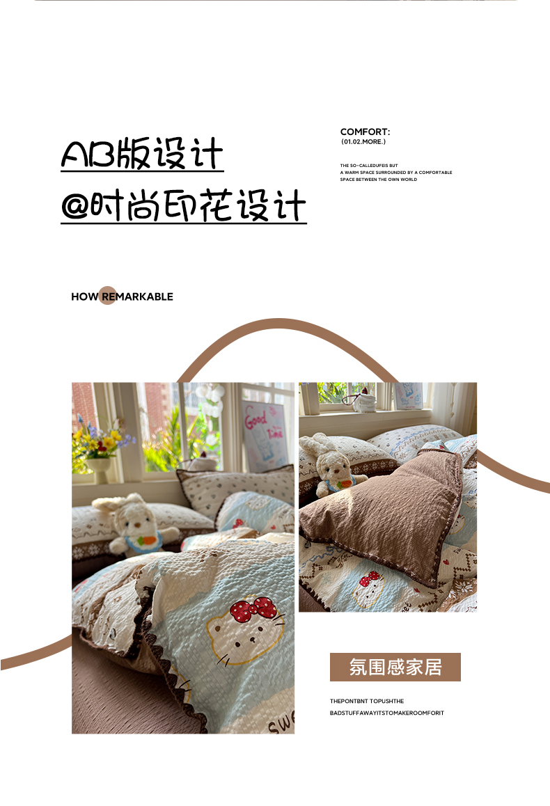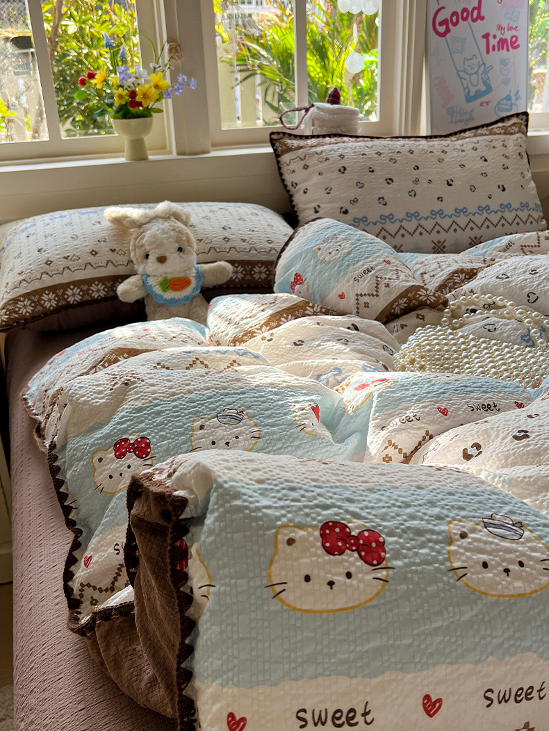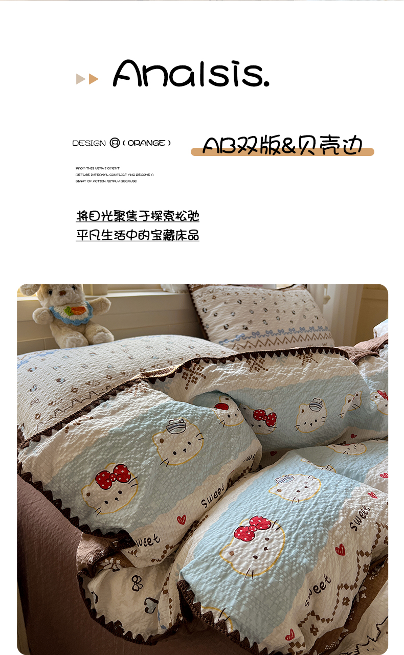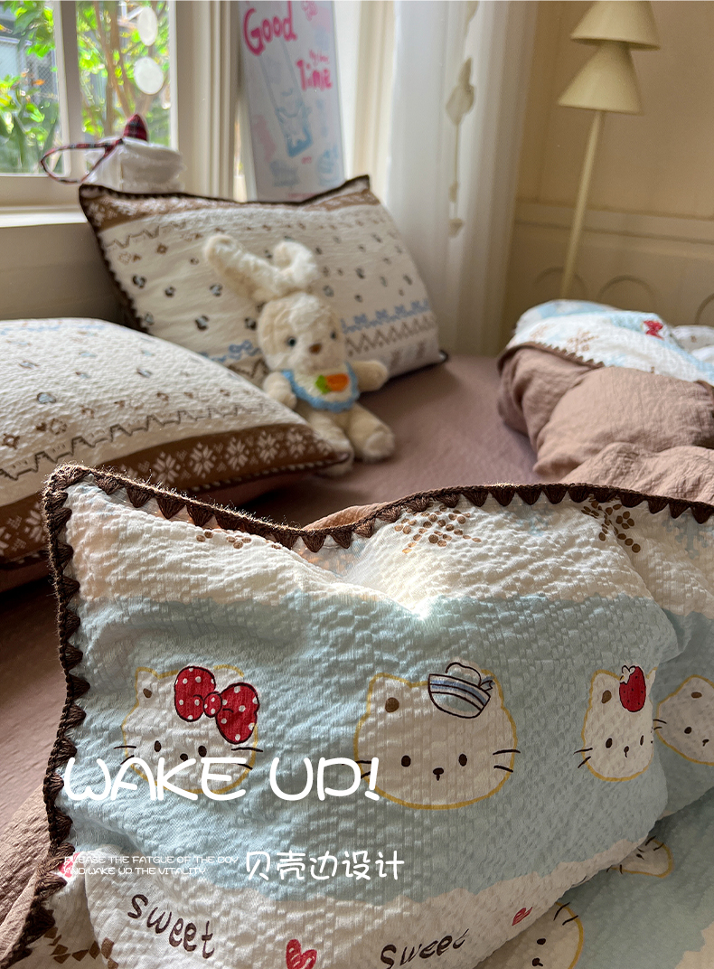 当前位置: 91家纺网 > 商品网购 > 床品套件 > 四件套 > 其它四件套 > 水墨江南 2026新款贝壳边泡芙纱时尚印花四件套 费尔岛小猫