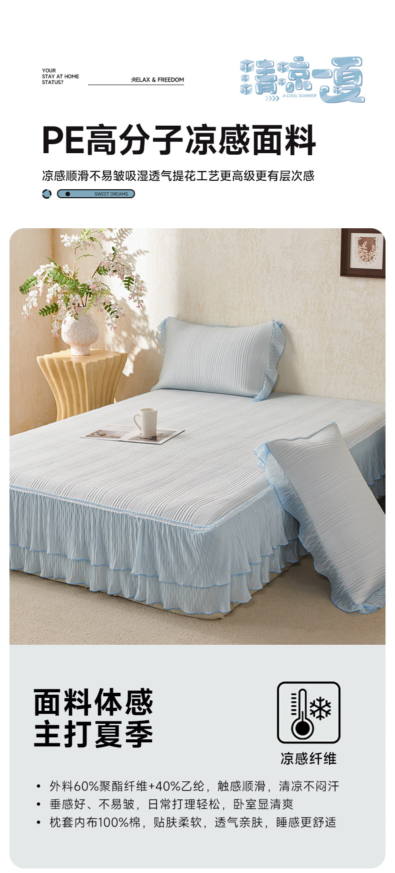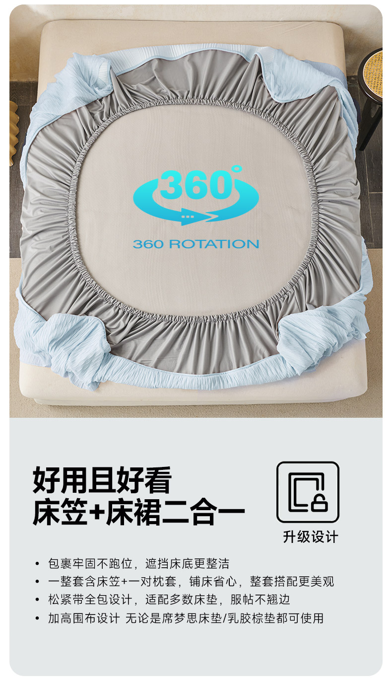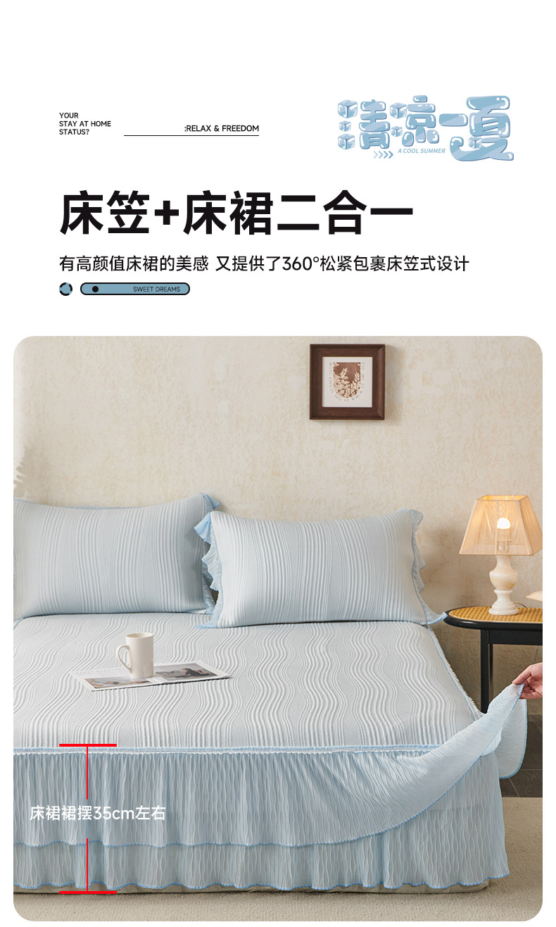 商品名称:(总)桂雅居 2026新款高分子冰感蕾丝床裙床笠款凉席三件套