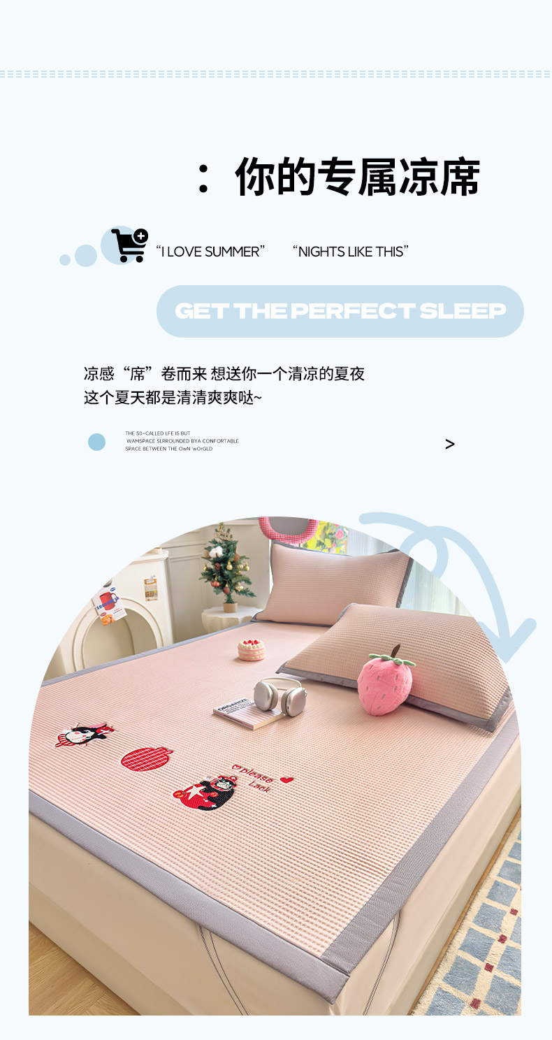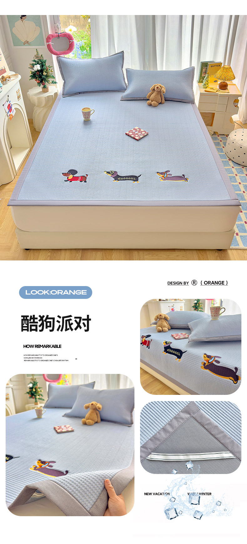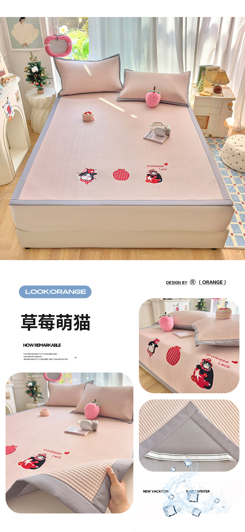 (总)圣比熊 2026春夏新款卡通印加绣花凉豆豆绣花凉席席子,草莓萌猫,黑喵小队,酷狗派对,萌宠果趣,三只萌猫