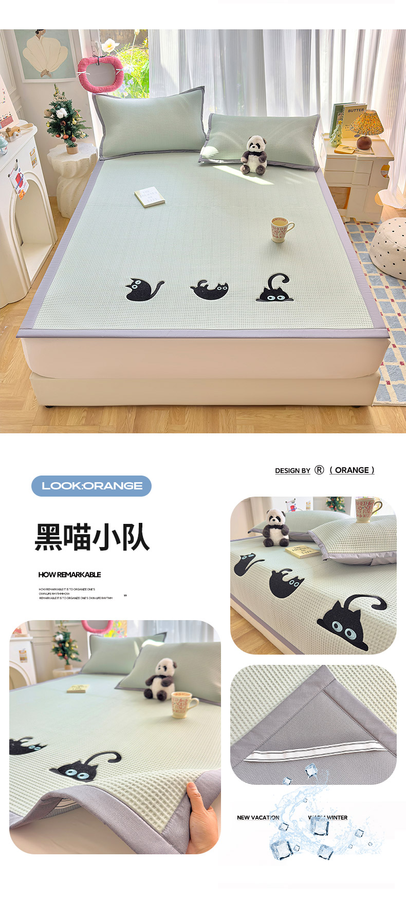 商品名称:圣比熊 2026春夏新款卡通印加绣花凉豆豆绣花凉席席子 黑喵小队
