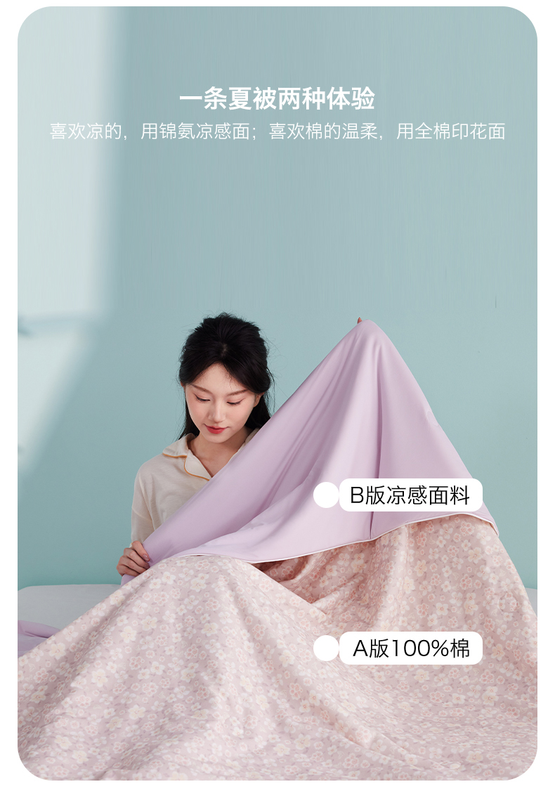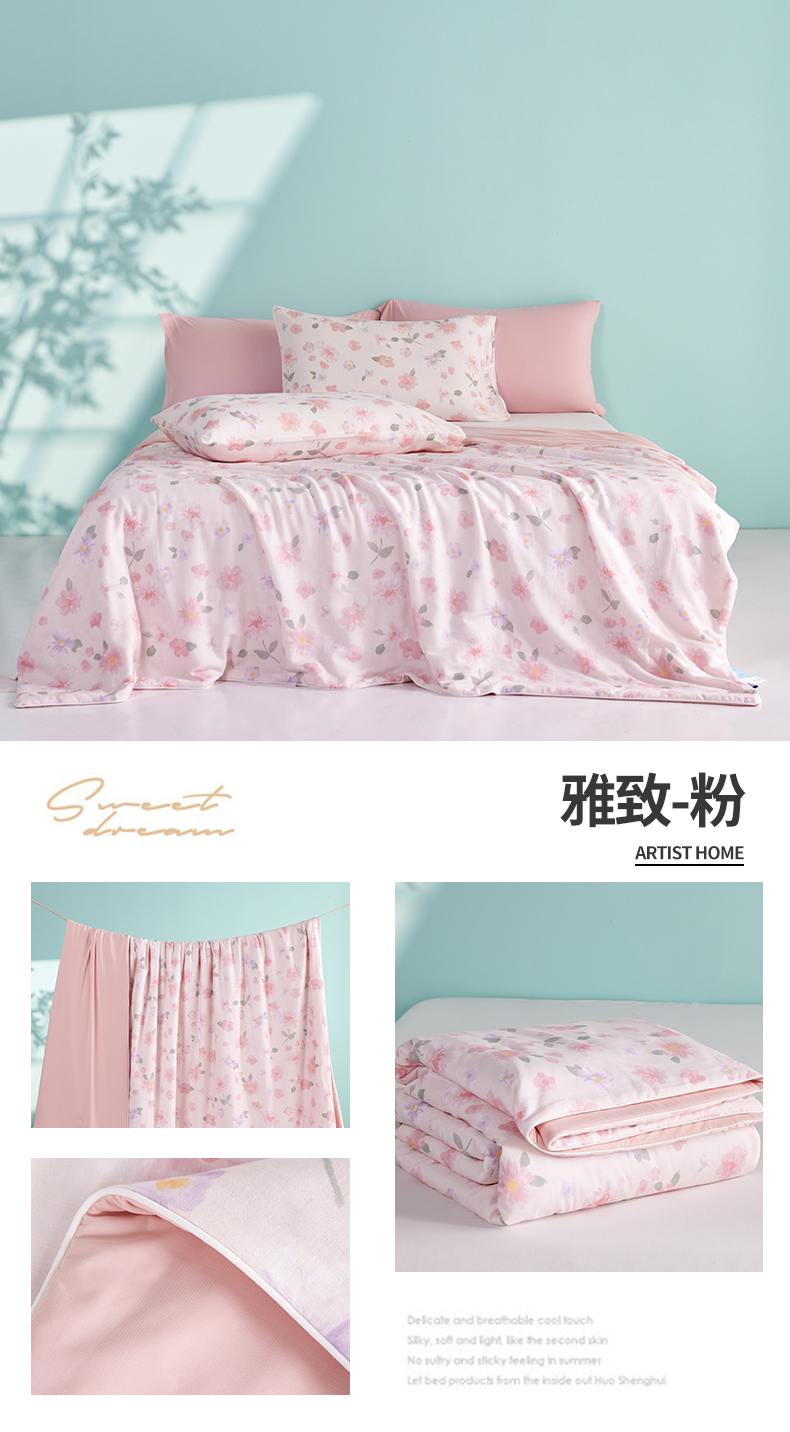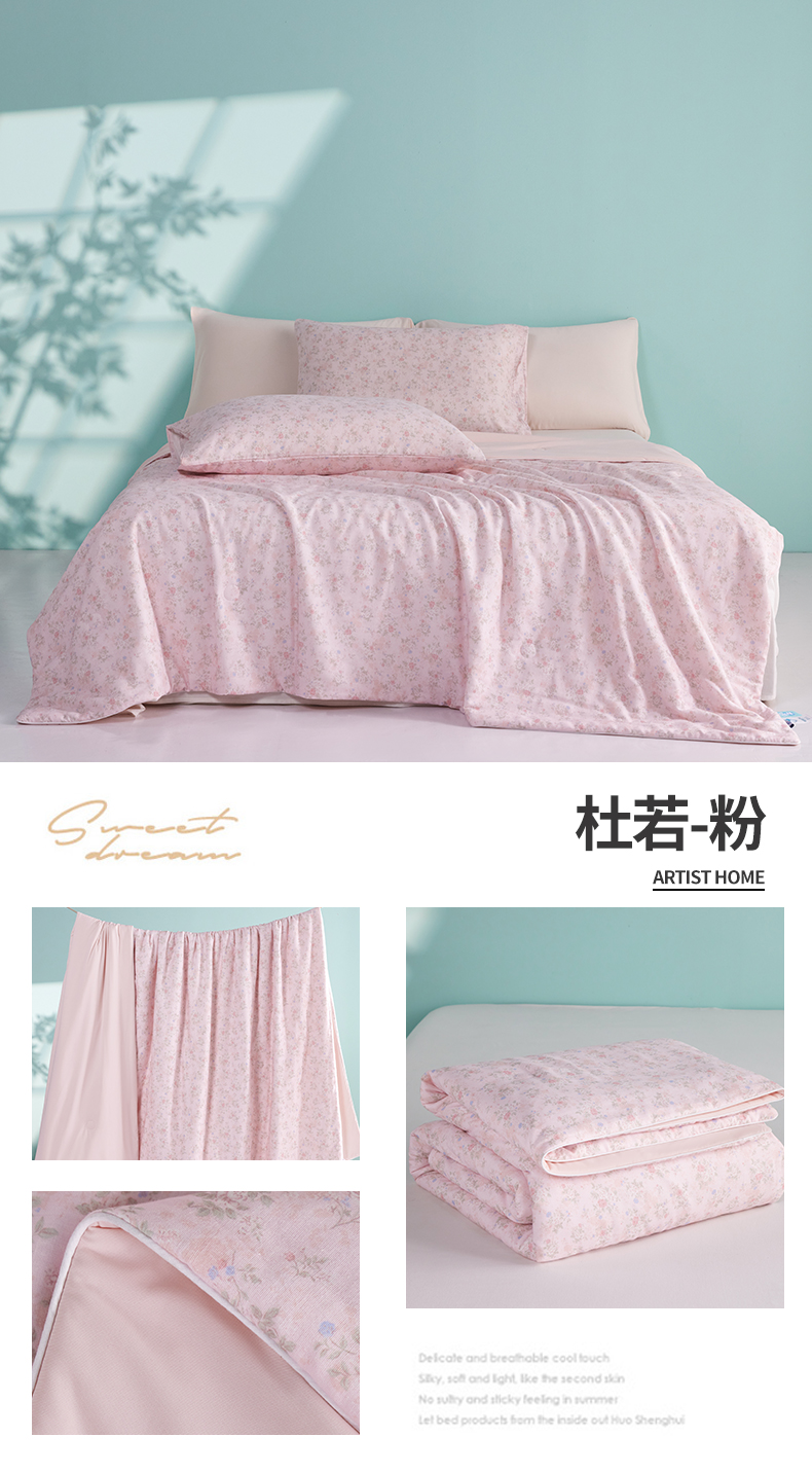 商品名称:瑞米家居 2026新款A类冰纱双感被夏被夏凉被空调被 蔷薇-粉