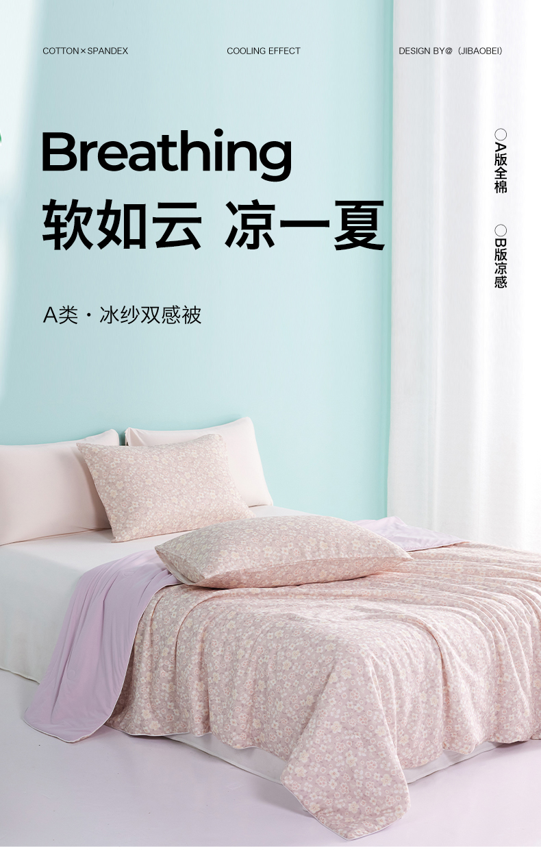瑞米家居 2026新款A类冰纱双感被夏被夏凉被空调被 蔷薇-粉