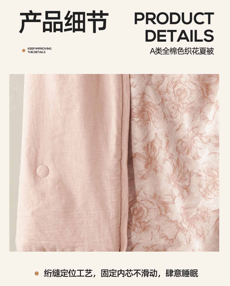 商品名称:瑞米家居 2026新款全棉色织花夏被夏凉被空调被 花与月-肉粉