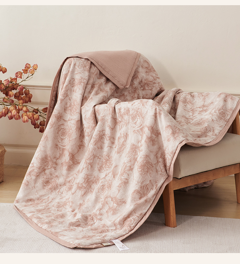 瑞米家居 2026新款全棉色织花夏被夏凉被空调被 花与月-肉粉