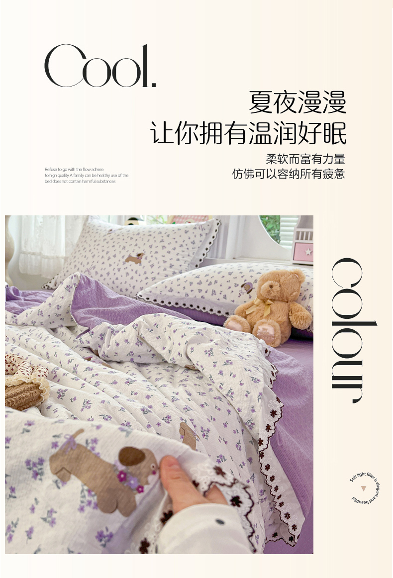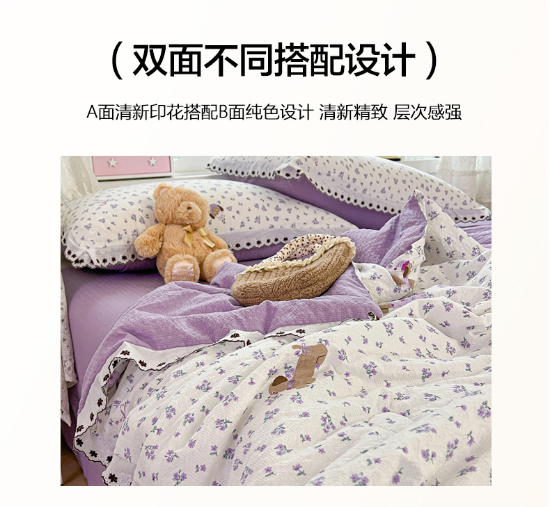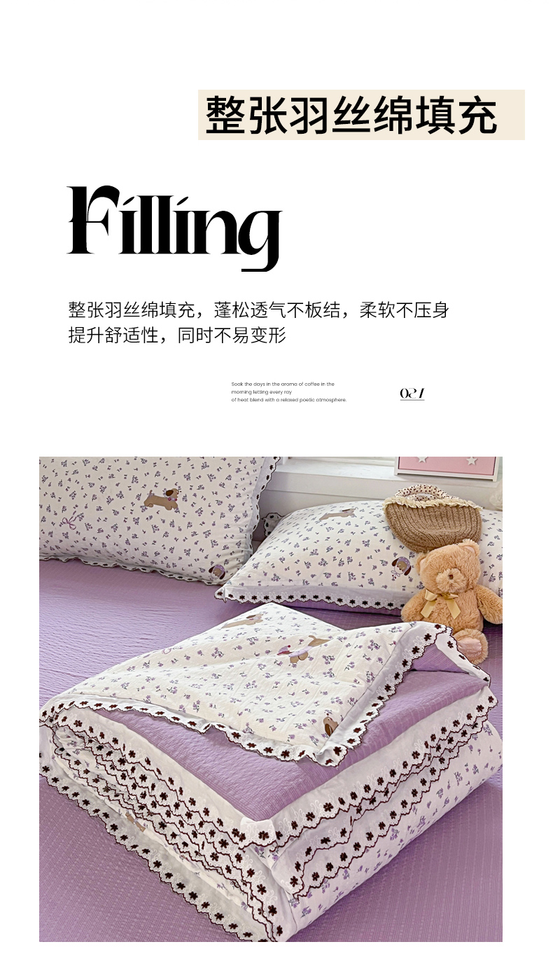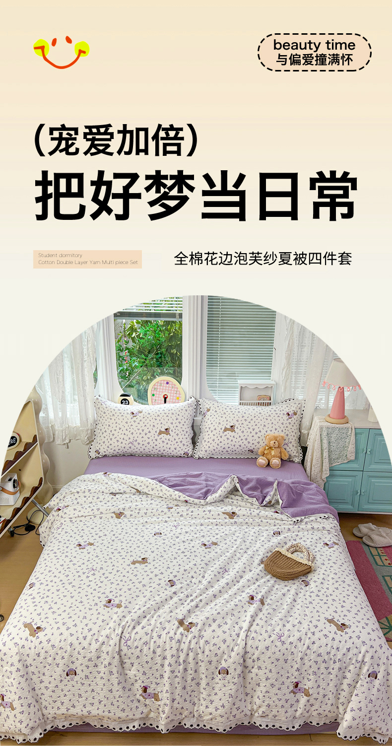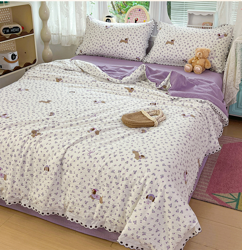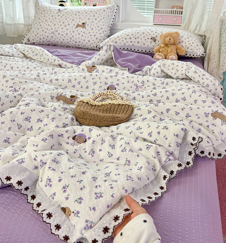 • 91家纺网 家纺一手货源 找家纺 恒尚居 2026新款A类泡芙纱花边夏被夏凉被空调被四套件 【紫调小狗】全棉花边