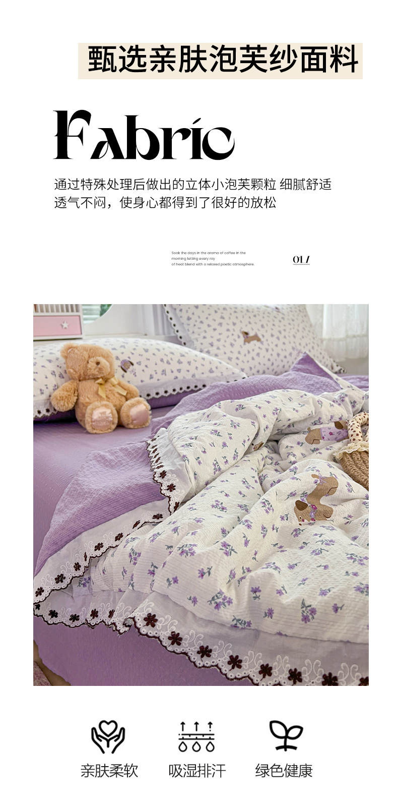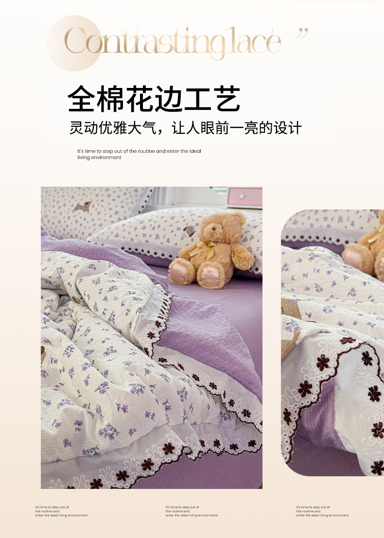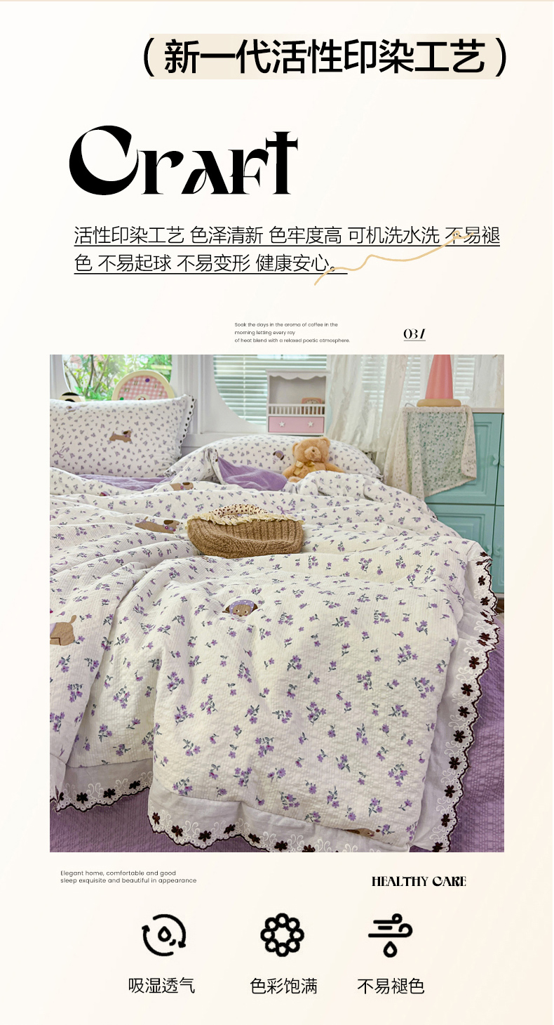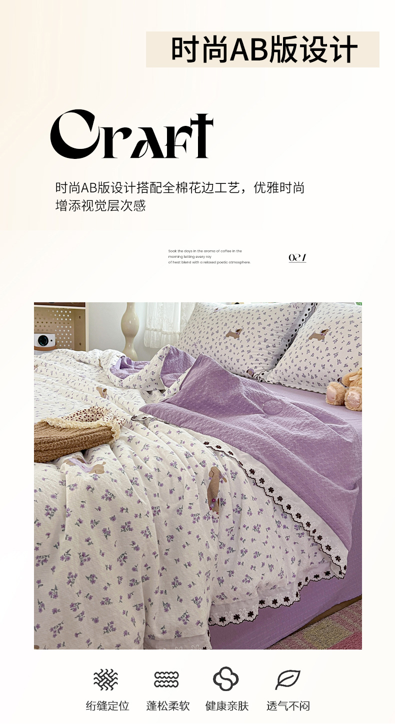 • 91家纺网 家纺一手货源 找家纺 恒尚居 2026新款A类泡芙纱花边夏被夏凉被空调被四套件 【紫调小狗】全棉花边