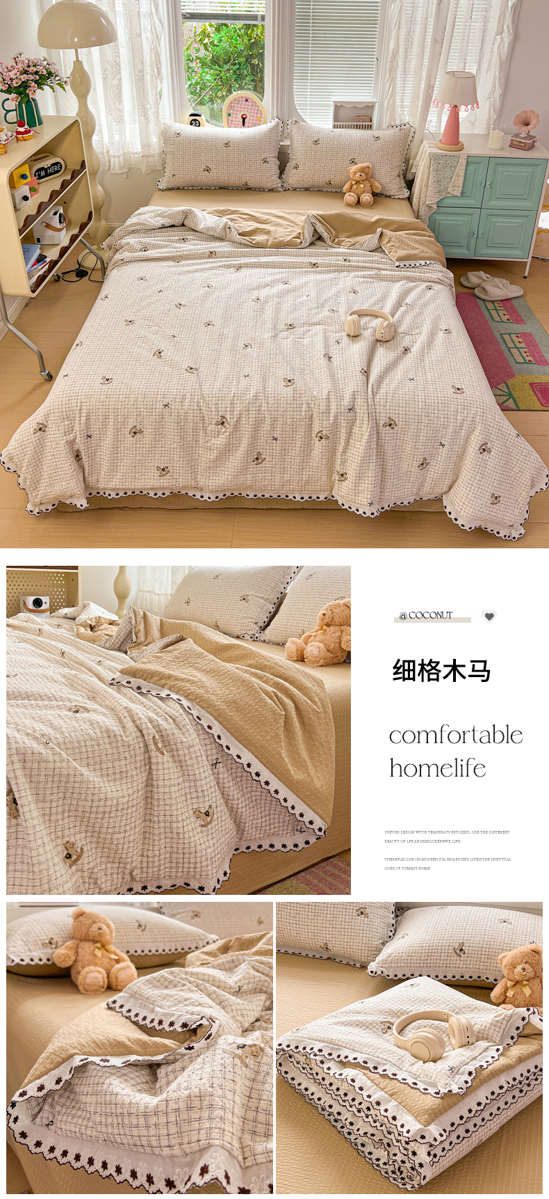 (总)恒尚居 2026新款A类泡芙纱贝壳边夏被夏凉被四件套空调被三角针绣边,【波点奶芙】贝壳边,【草莓KT】贝壳边,【宠物天地】贝壳边,【费尔岛小狗】贝壳边,【粉糖泡泡猫】贝壳边,【花间紫】贝壳边,【花雨小兔】贝壳边,【兰格奶狗】贝壳边,【满地樱桃】贝壳边,【奶呼小猫】贝壳边,【奶黄星星人】贝壳边,【拼格奶蓝】贝壳边,【清新粉玫瑰】贝壳边,【碎花摇摇马】贝壳边,【甜妹小猫】贝壳边,【旺财】贝壳边,【细格木马】贝壳边,【小马奔腾】贝壳边,【紫调小狗】贝壳边,【字母喵喵】贝壳边,组合图仅供展示不可下单