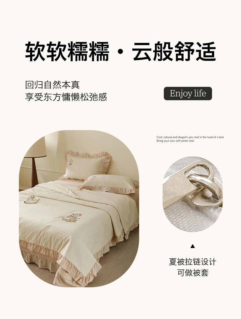 (总)瑞米家居 2026新款棉麻床盖夏被四件-森羽,森羽-灰,森羽-芥末绿,森羽-香芋紫,森羽-原白