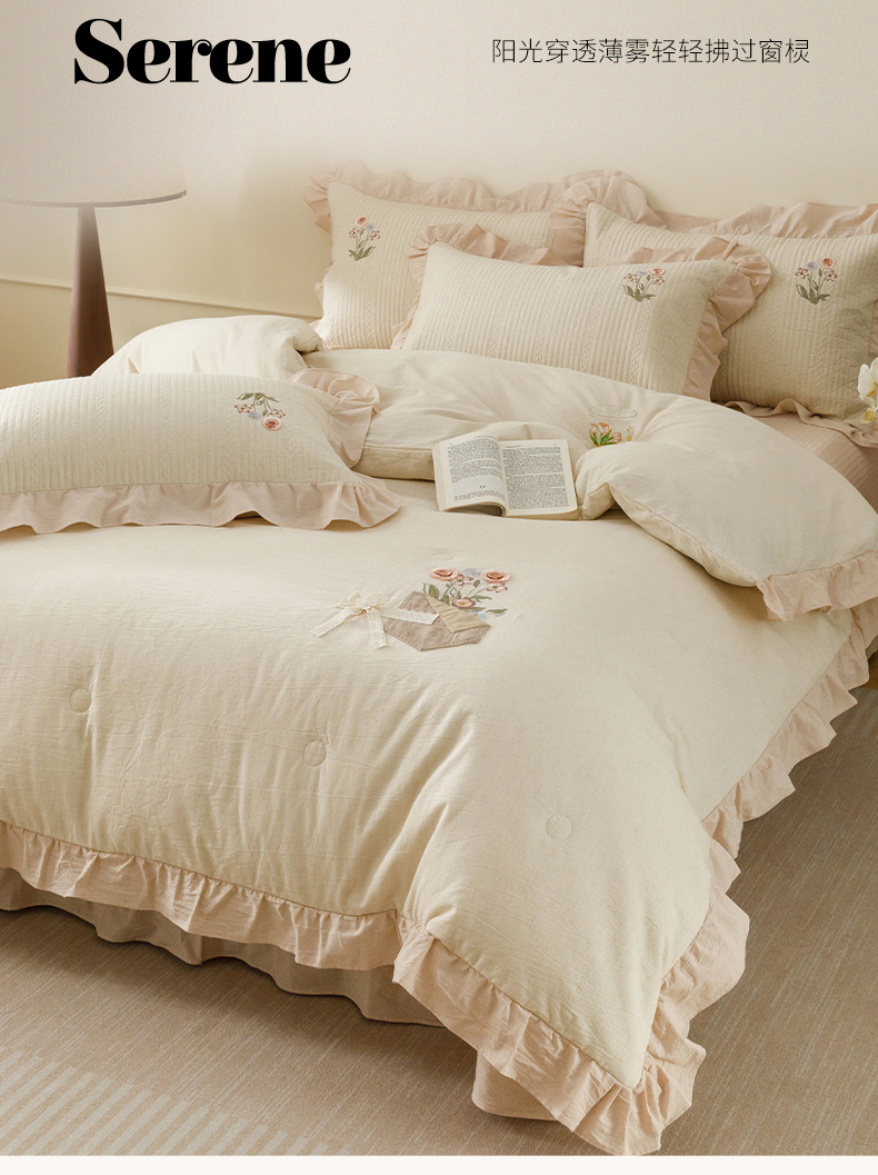 (总)瑞米家居 2025新款双层纱花边款四件套,花雅,浅爱,柔梦,盛世颜,温暖思绪,优朵,彩色爱心-米,春日记忆-绿,春日记忆-浅咖,花韵-粉,蜜夏-米,南汐-米,凝鸢-浅紫,轻婉-粉,娴静小花-绿,雅致-粉,叶颜-粉,优朵-紫,峥嵘岁月-紫