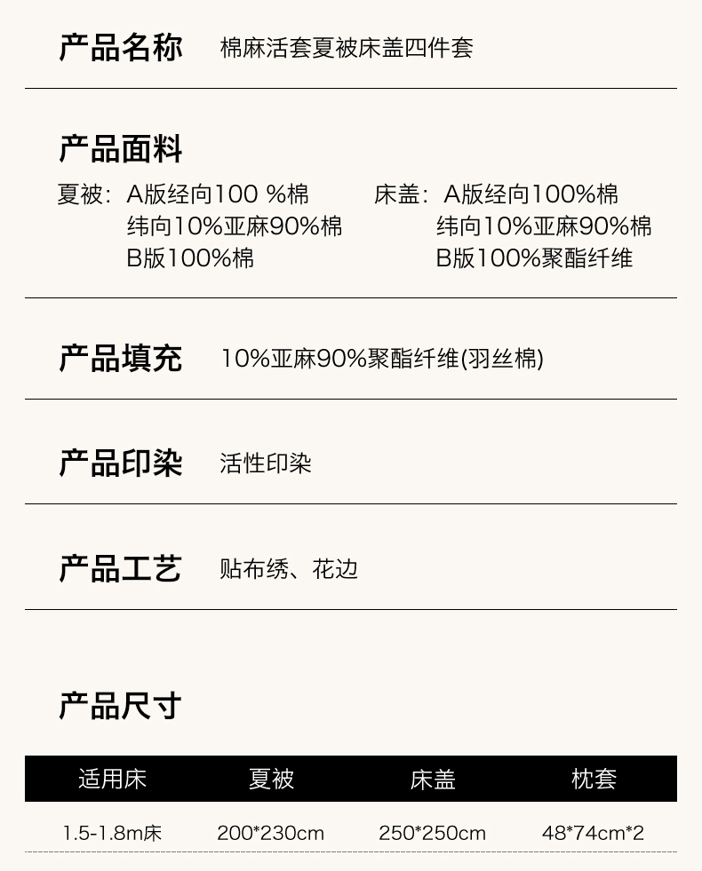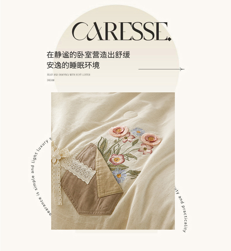 商品名称:(总)瑞米家居 2026新款棉麻床盖夏被四件套-繁花