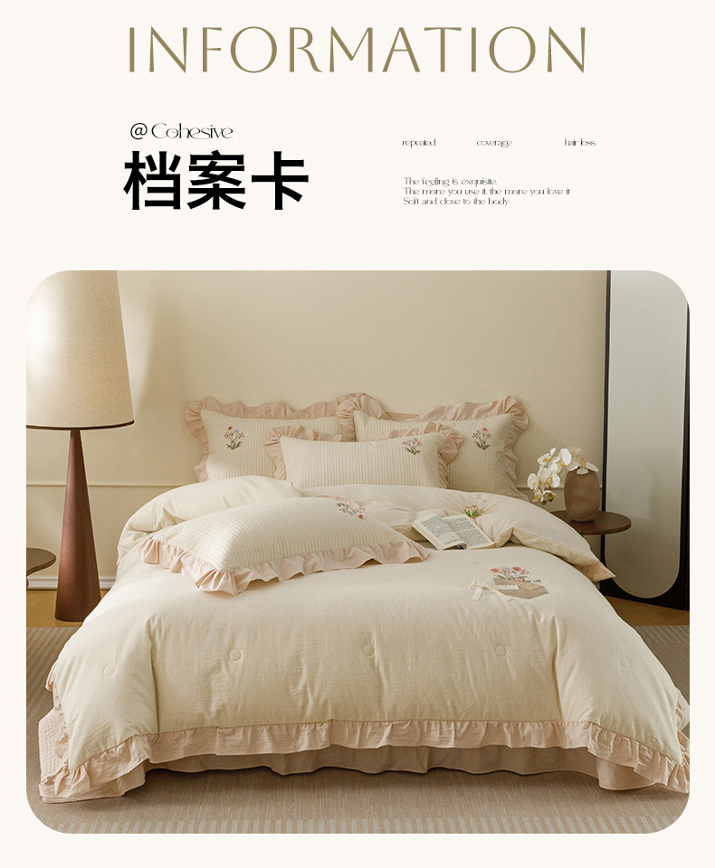 (总)瑞米家居 2025新款A类棉麻提花花边款四件套-蝶恋花,蝶恋花-粉色,蝶恋花-红咖,蝶恋花-芥末绿,蝶恋花-米色,蝶恋花-中灰