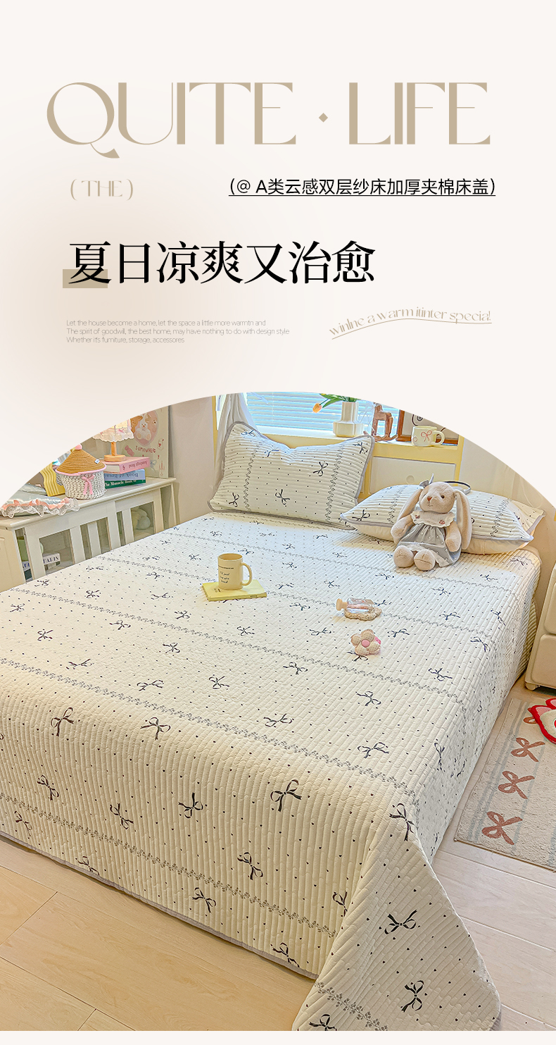 当前位置: 91家纺网 > 商品网购 > 床上用品 > 床盖 > 欧妮家纺 2026新款A类云感双层纱夏被单床盖 夏日条纹