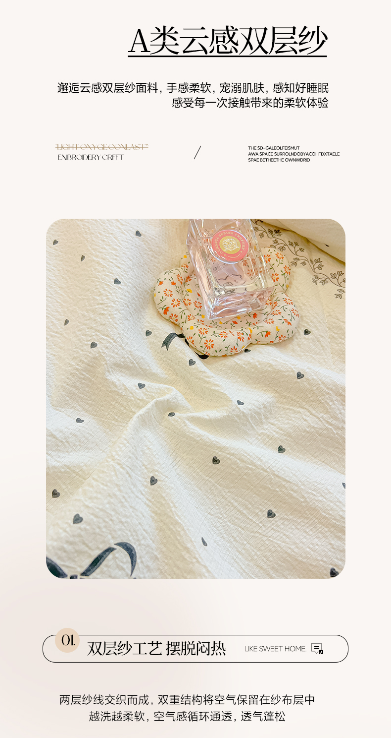当前位置: 91家纺网 > 商品网购 > 床品套件 > 四件套 > 夏被四件套 > 欧妮家纺 2026新款A类云感双层纱夏被床盖四件套 格子草莓