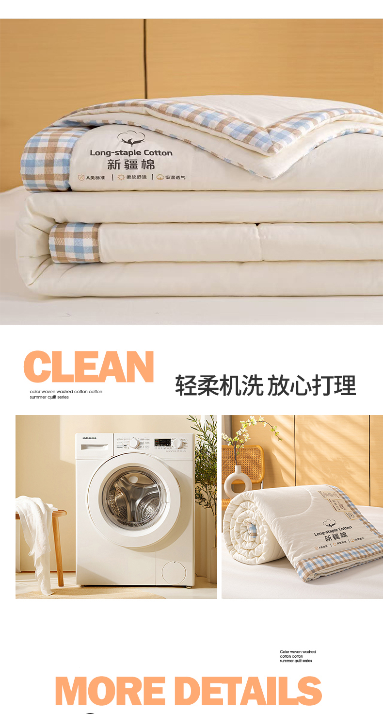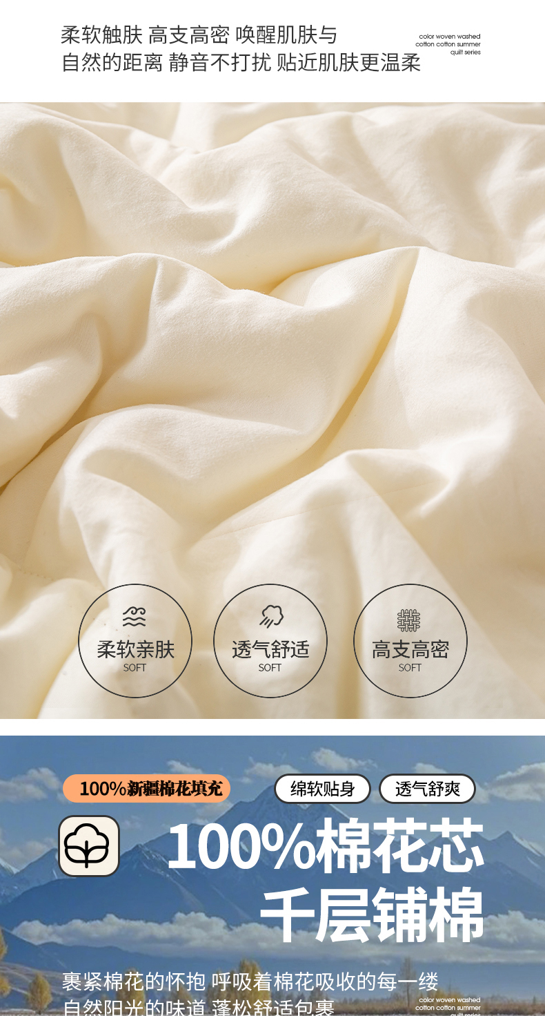(总)云玲时尚 2026新款水洗棉100%新疆棉花纯色夏被夏凉被空调被,奶油黄,清雅灰,绅士灰,深睡蓝,水漾蓝,松墨绿,温润粉,杏仁咖,樱花粉,月光白