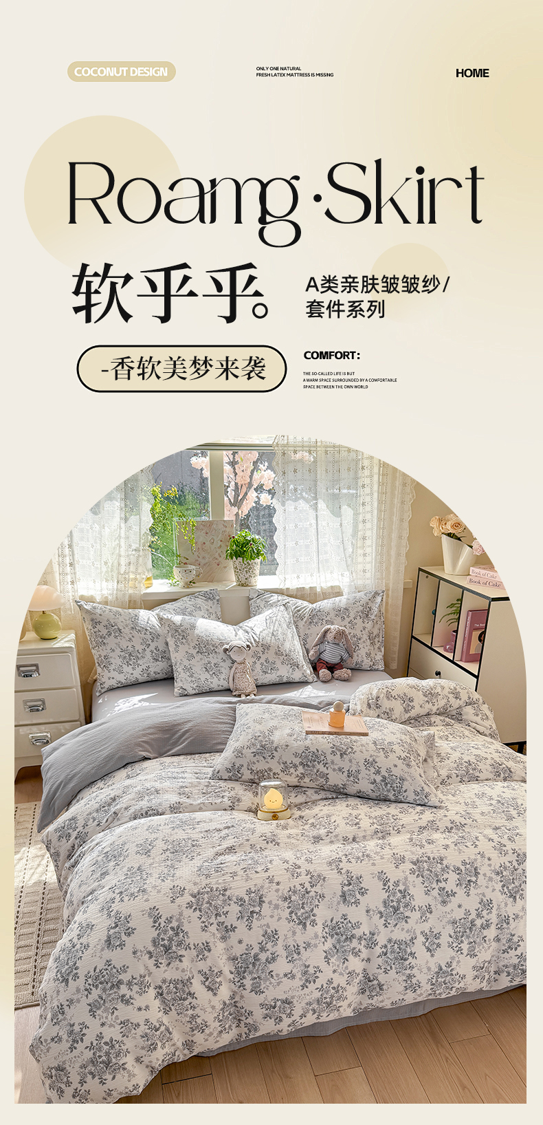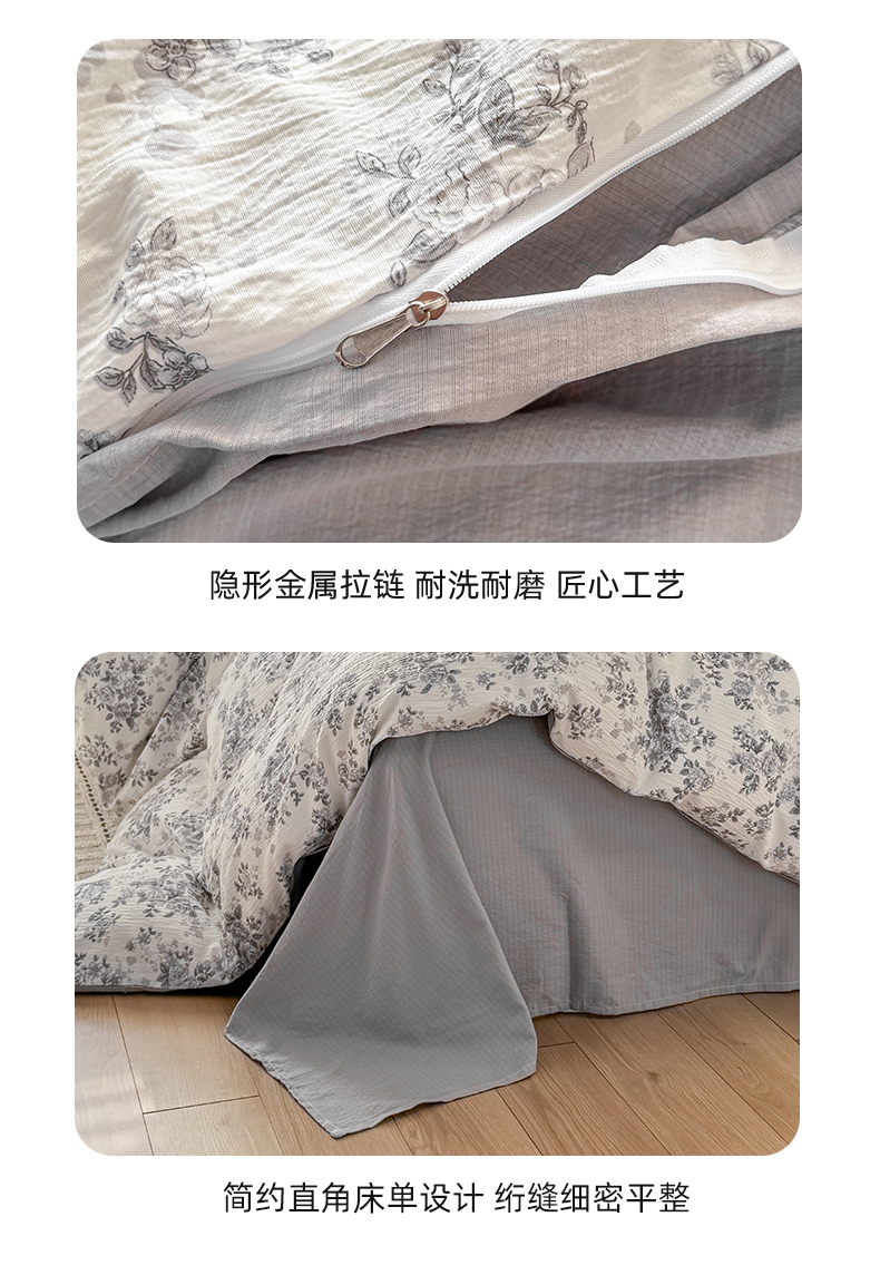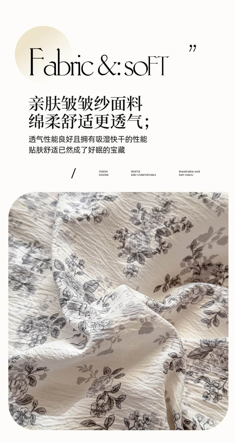当前位置: 91家纺网 > 商品网购 > 床品套件 > 四件套 > 其它四件套 > 丝芙妮家居 2026春夏新款皱皱棉双层纱泡芙棉四件套 雅蔓