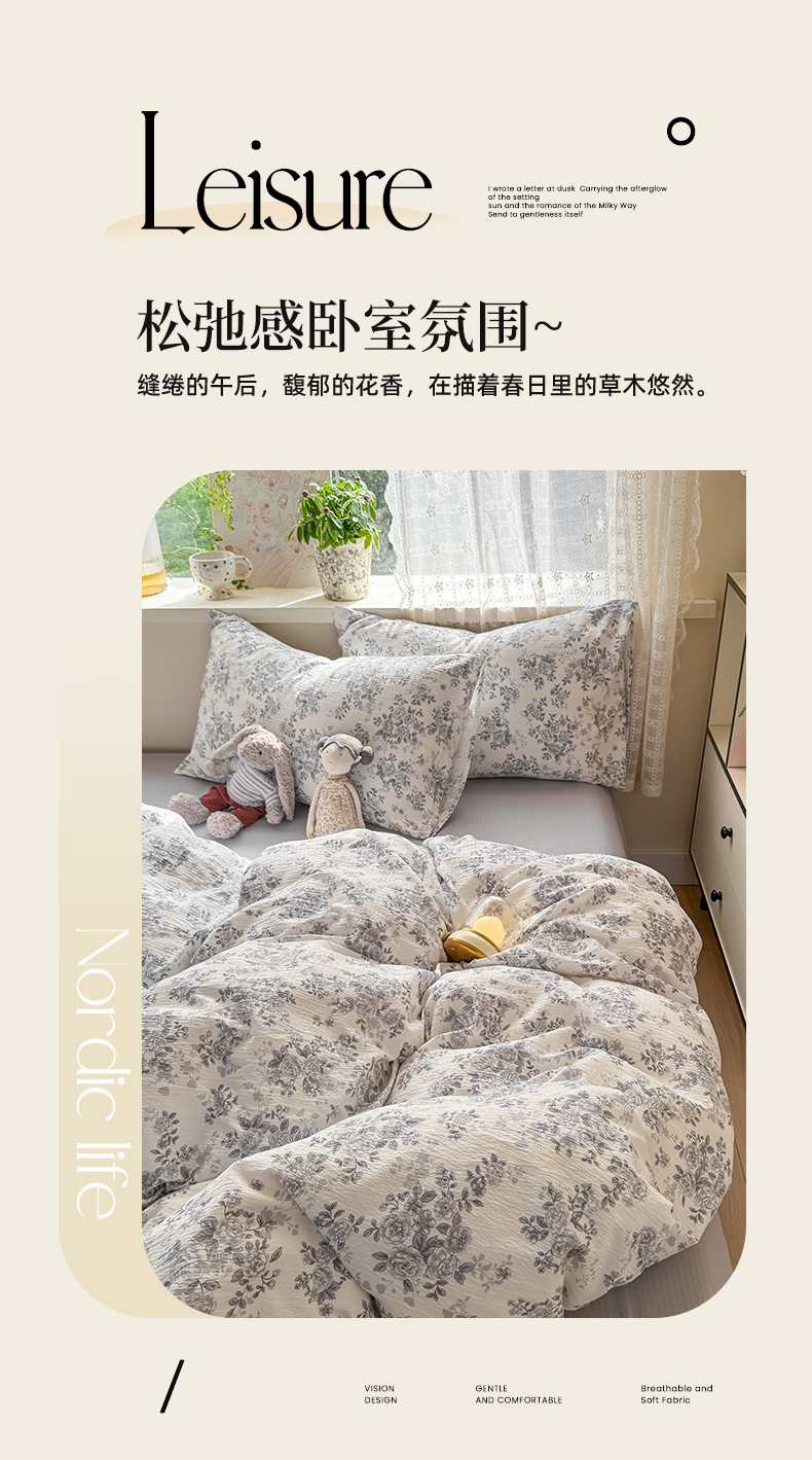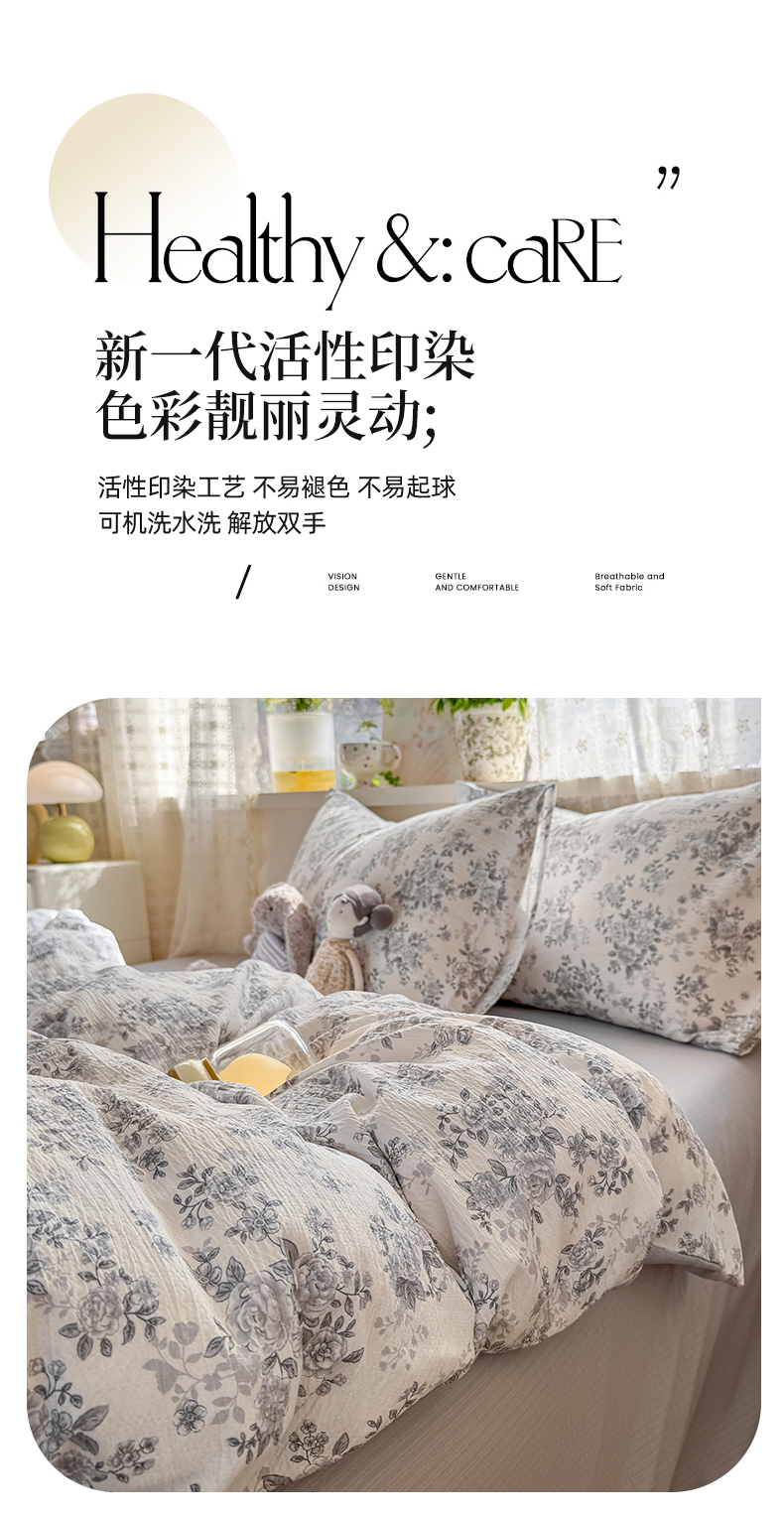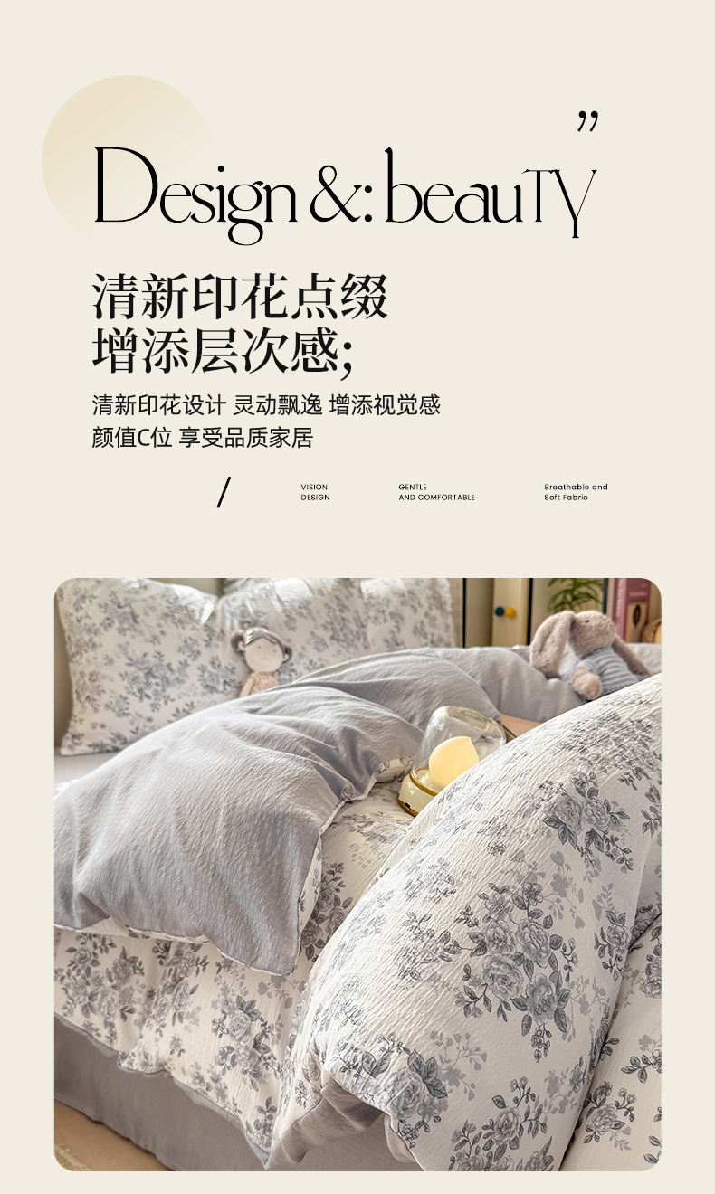 当前位置: 91家纺网 > 商品网购 > 床品套件 > 四件套 > 其它四件套 > 丝芙妮家居 2026春夏新款皱皱棉双层纱泡芙棉四件套 雅蔓