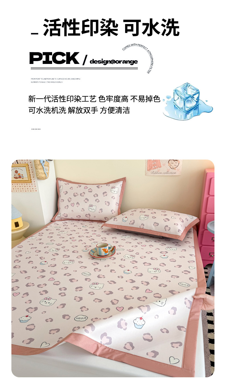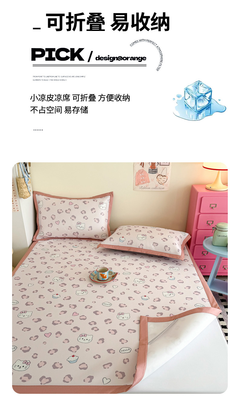 商品名称:倾慕家纺 2026春夏新款A类印花小冰皮软席凉席席子 豹猫粉