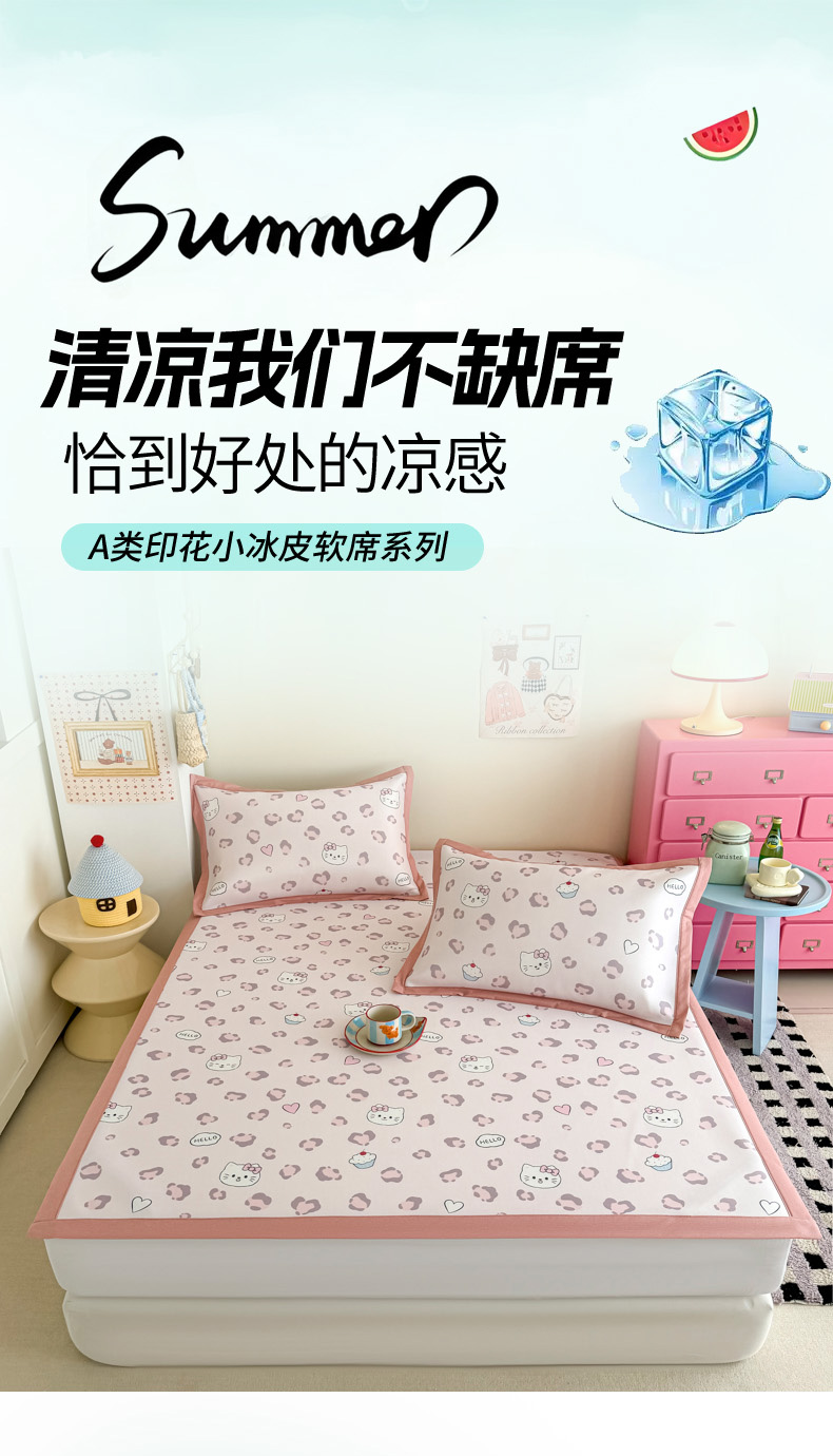 (总)倾慕家纺 2026春夏新款A类印花小冰皮软席凉席席子,组合图仅供展示不可下单,豹猫粉,豹猫蓝,贝壳鲸鱼,冰雪企鹅,蛋糕小兔,云朵小马