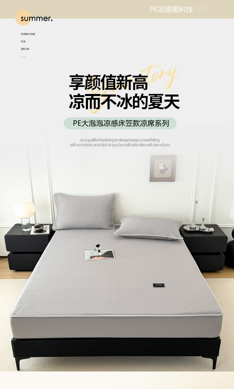 倾慕家纺 2026春夏新款全PE冰豆豆全包围床笠款凉席席子 箭纹灰