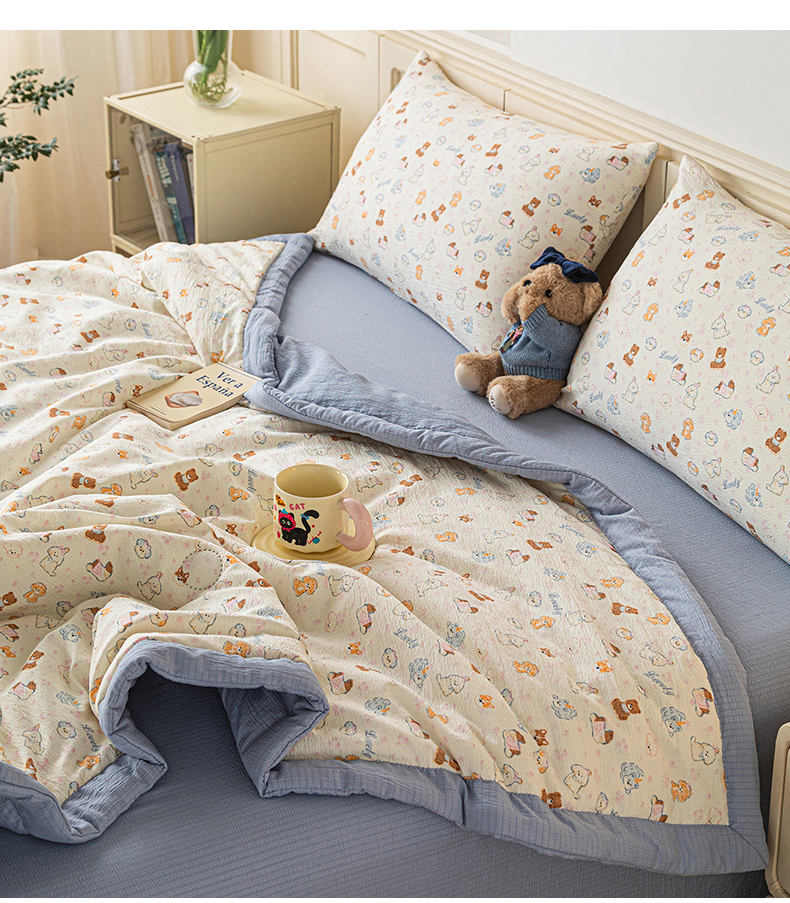 (总)几禾 2026新款A类云感双层纱夏被木棉皱皱纱棉花被小清新印花夏被夏凉被费尔岛空调被,奔跑猫,蛋糕派,可可小狗,蓝枝,猫趣,抹茶小猫,嫩芽,泡芙狗,软萌狗,狮子派对,兔子乐队,顽皮熊粉,顽皮熊蓝,挽歌,摘星