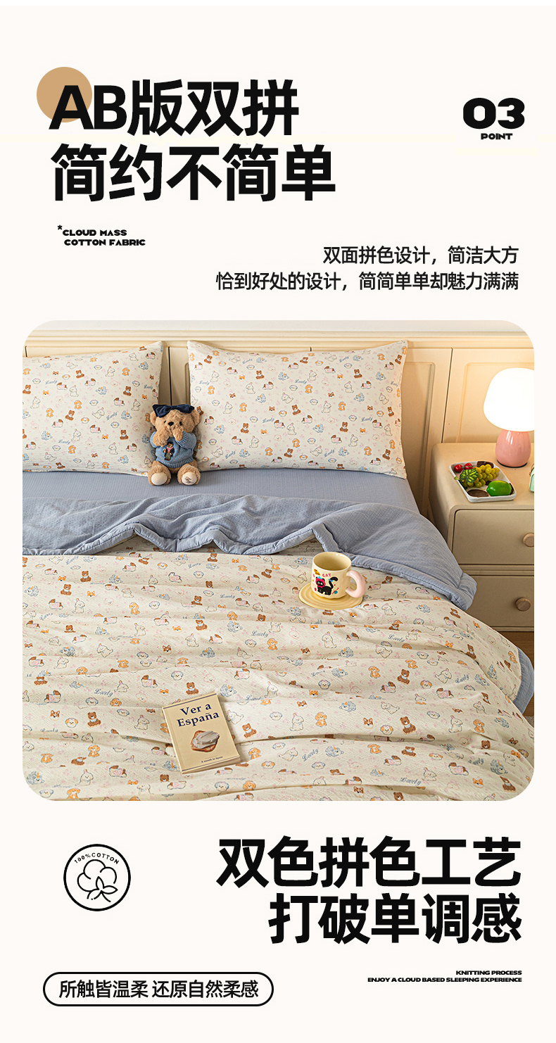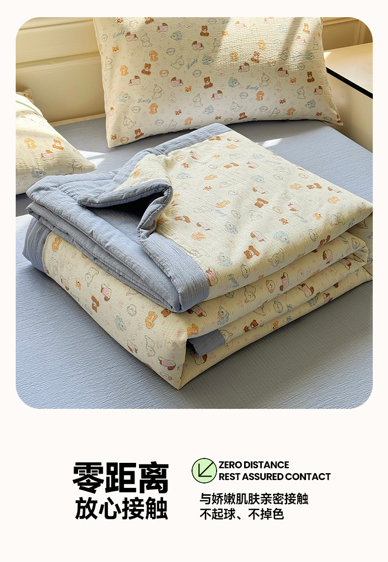 (总)几禾 2026新款A类云感双层纱夏被木棉皱皱纱棉花被小清新印花夏被夏凉被费尔岛空调被,奔跑猫,蛋糕派,可可小狗,蓝枝,猫趣,抹茶小猫,嫩芽,泡芙狗,软萌狗,狮子派对,兔子乐队,顽皮熊粉,顽皮熊蓝,挽歌,摘星