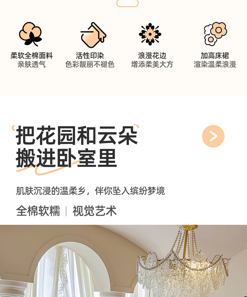 商品名称:(总)网红馆(ck家纺) 2026春夏新款小清新全棉印花床裙四件套