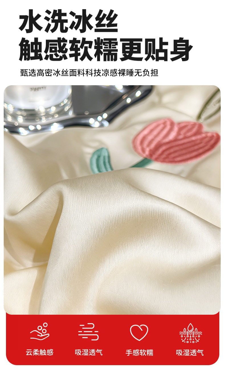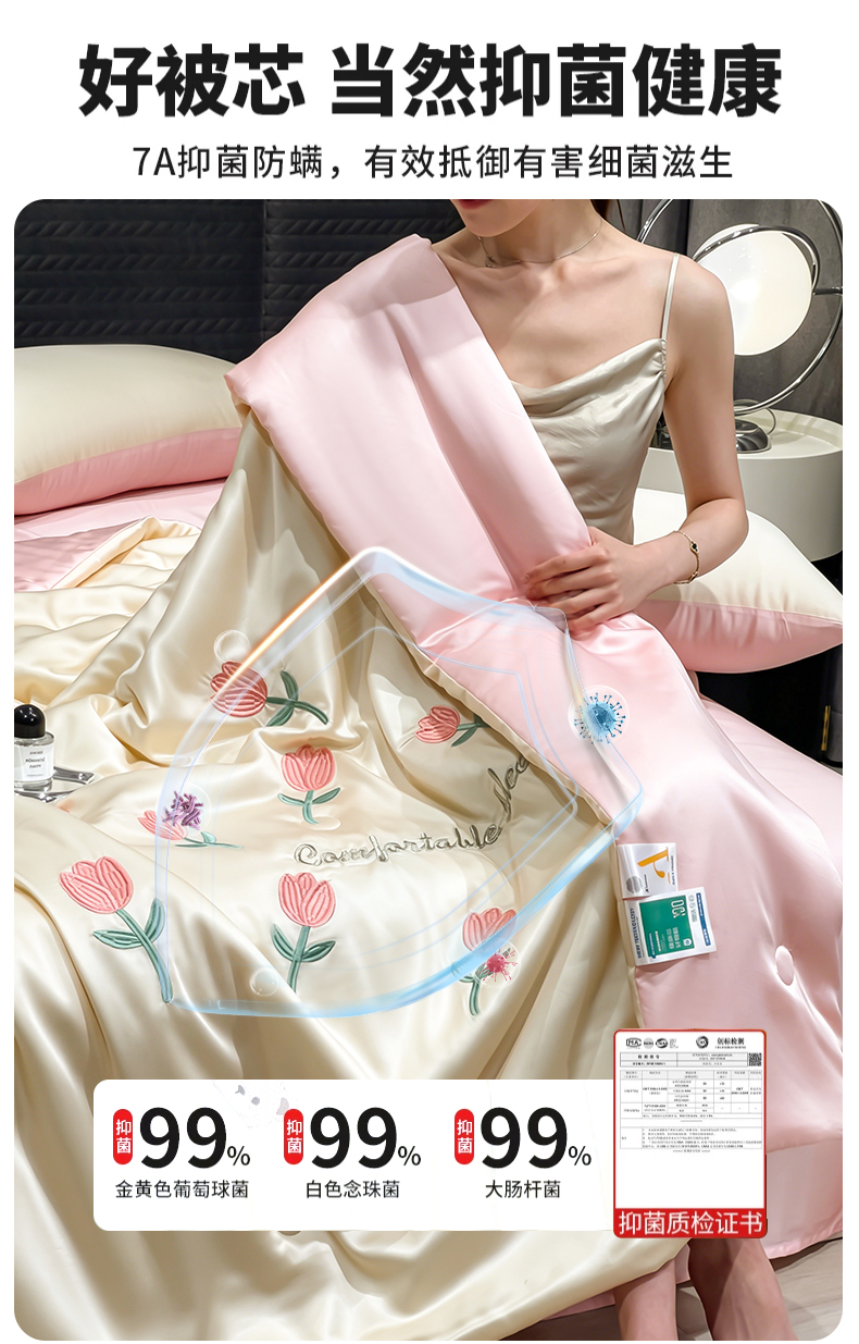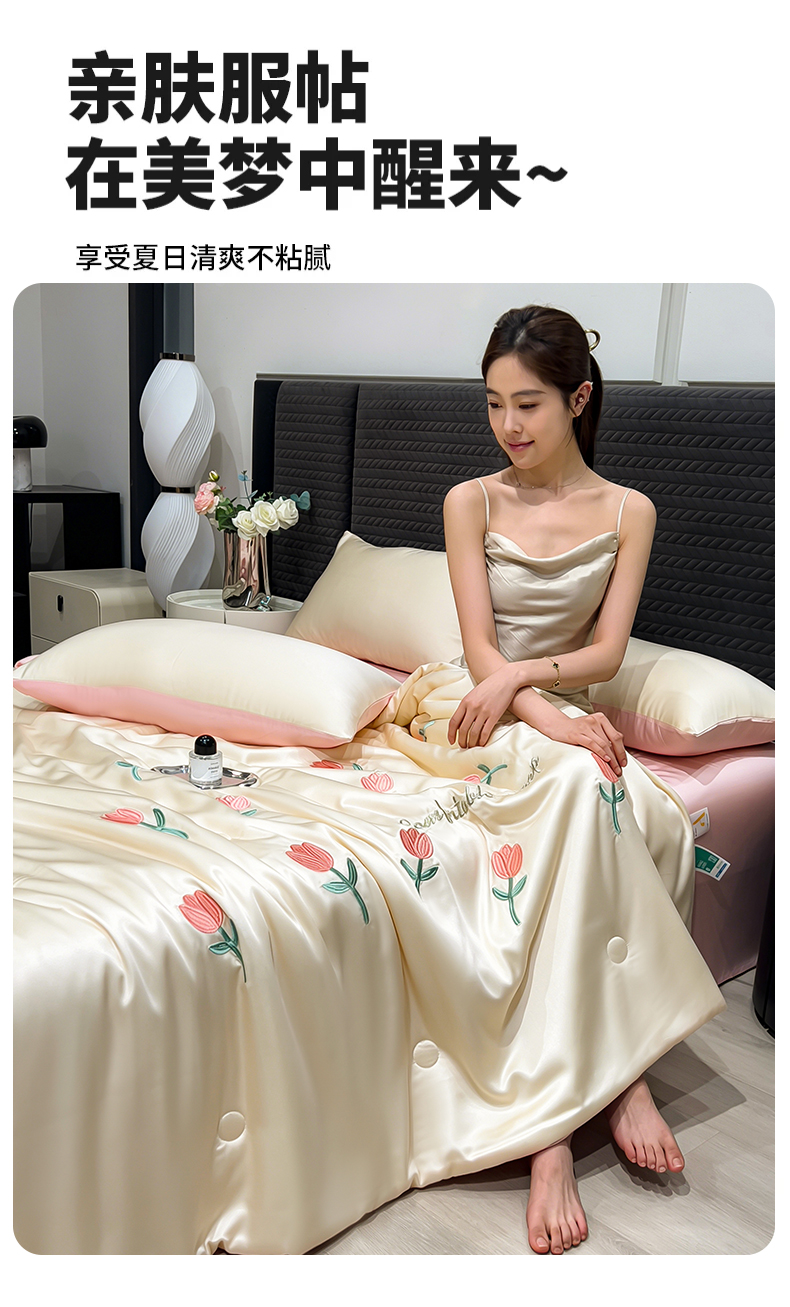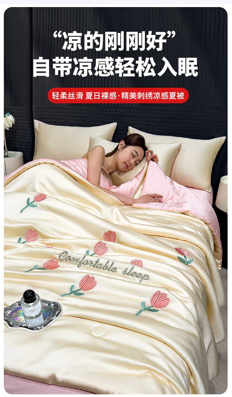 商品名称:(总)爱彼家纺 2026夏季新款水洗冰丝轻奢刺绣凉感夏被夏凉被空调被