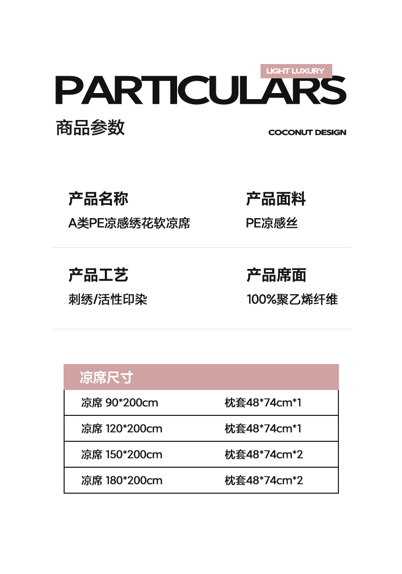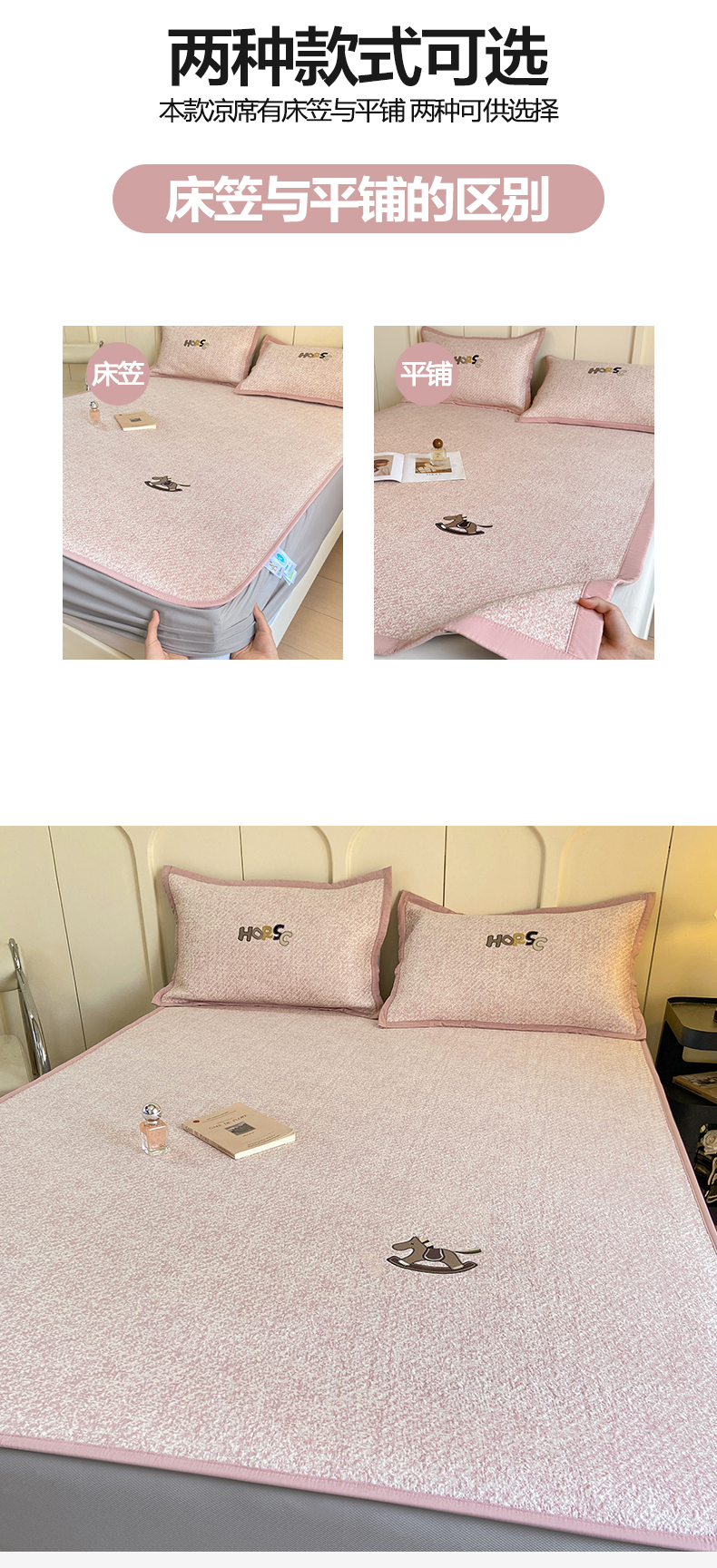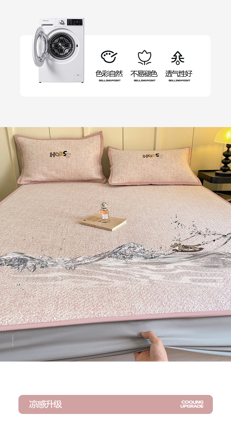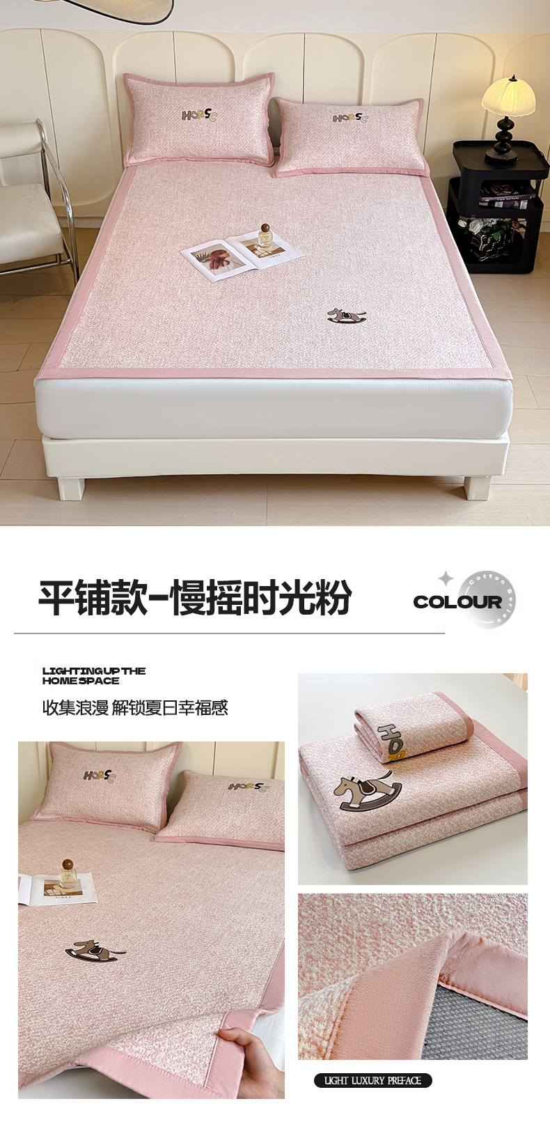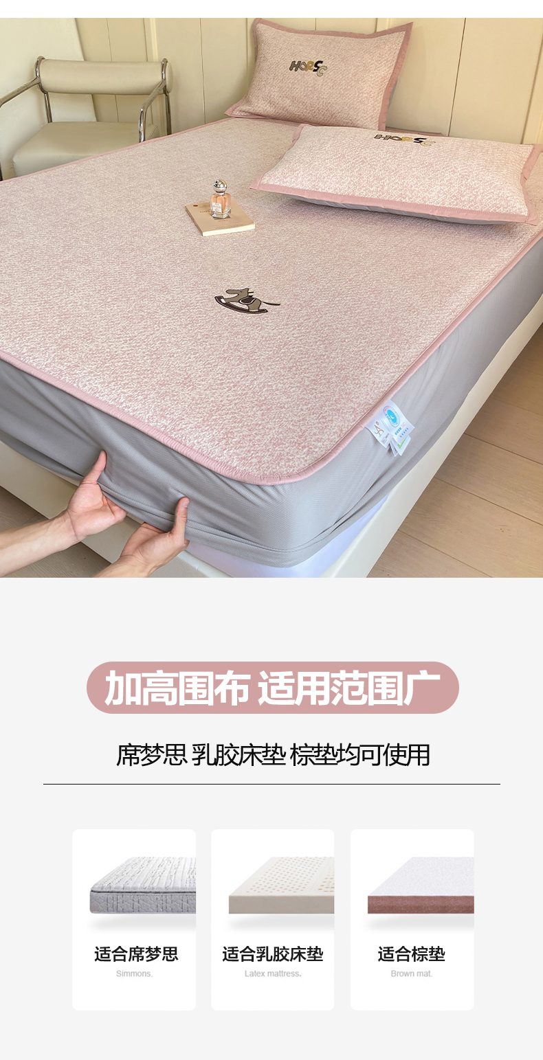 商品名称:帅露家纺 2026新款A类PE中分子绣花软凉席席子-慢摇时光 床笠款-慢摇时光粉