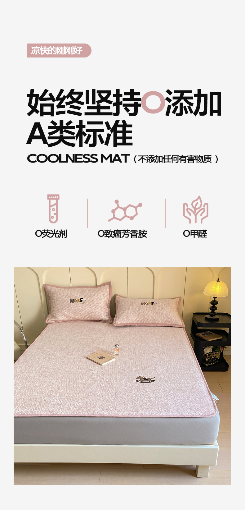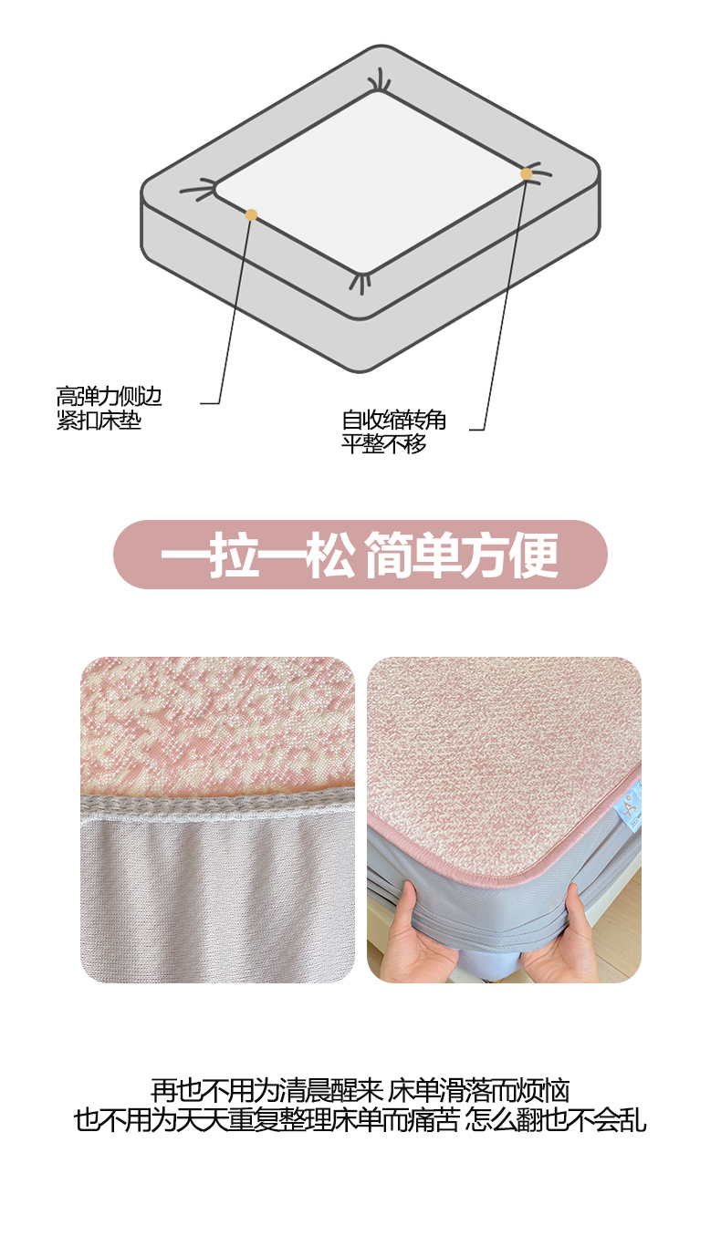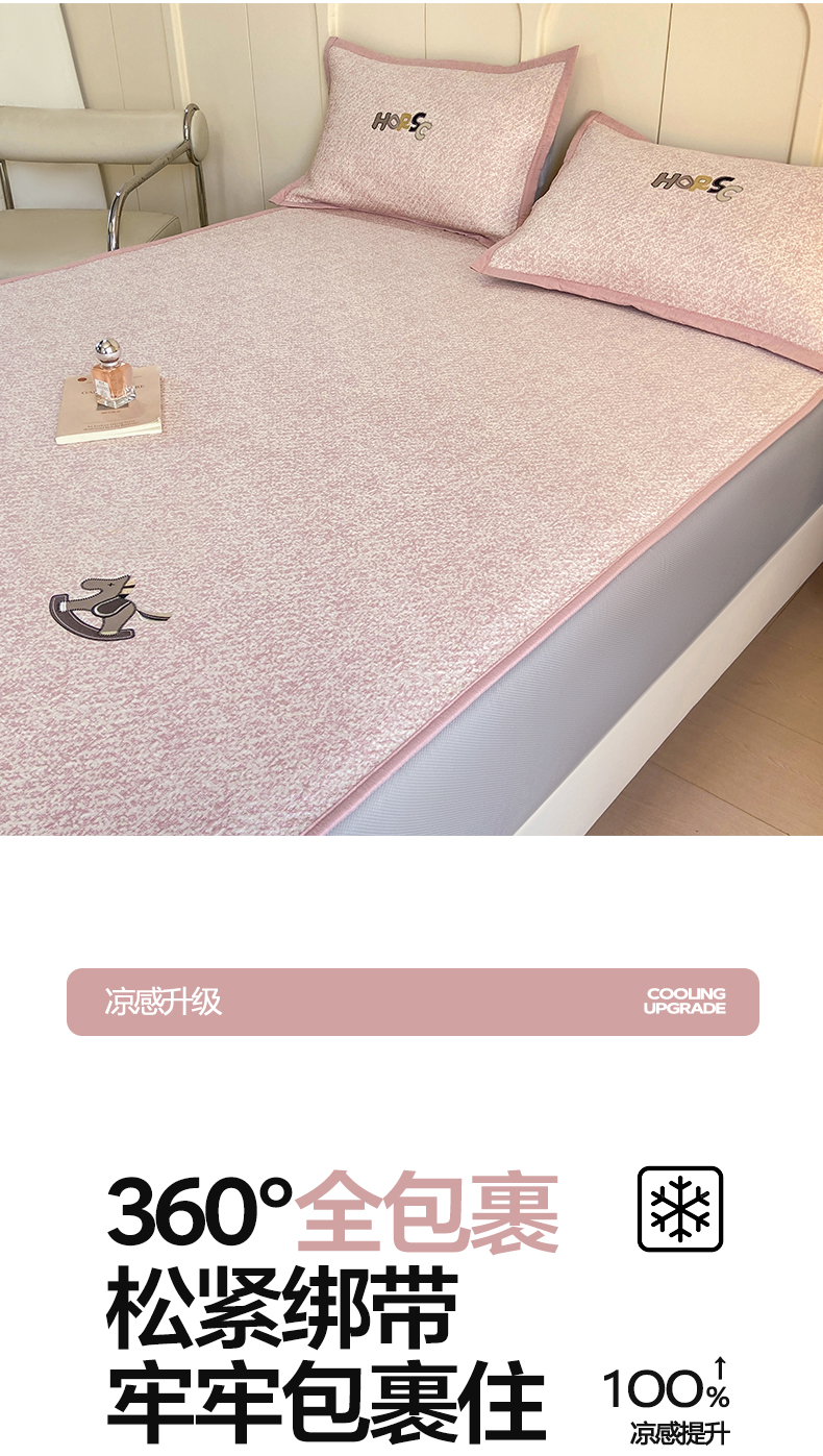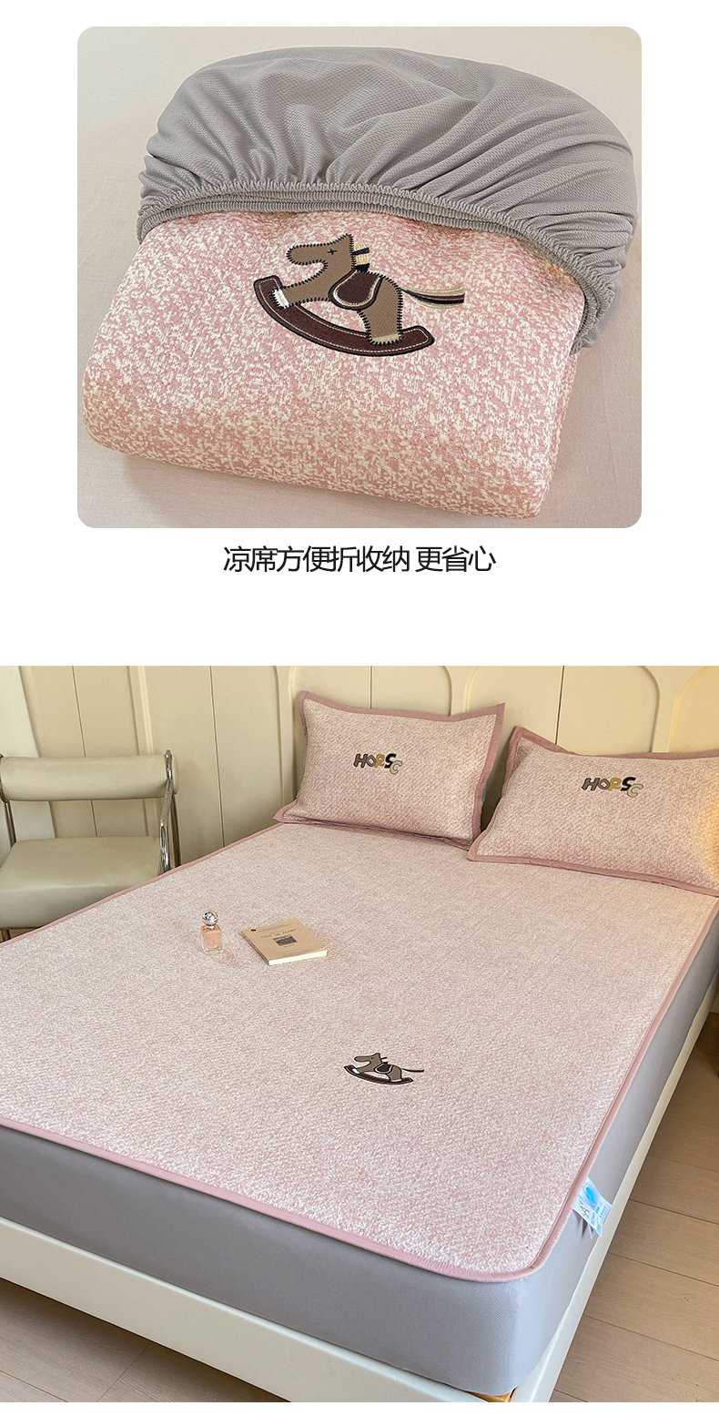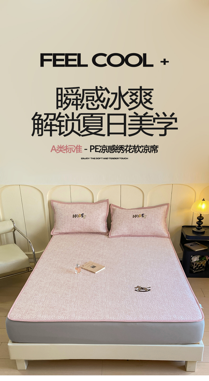 帅露家纺 2026新款A类PE中分子绣花软凉席席子-慢摇时光 床笠款-慢摇时光粉