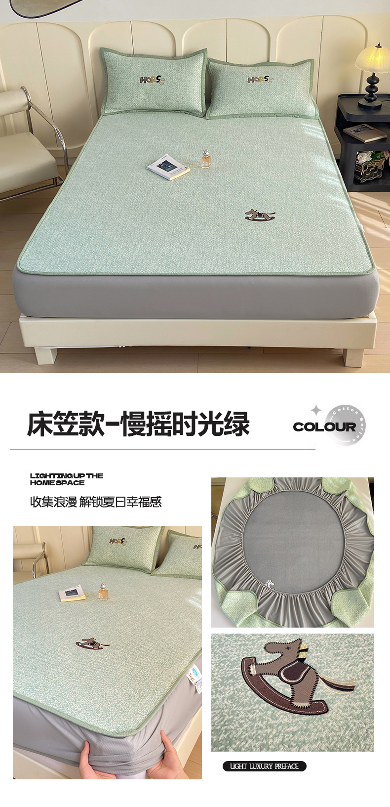 (总)帅露家纺 2026新款A类PE中分子绣花软凉席席子-慢摇时光,床笠款-慢摇时光粉,床笠款-慢摇时光灰,床笠款-慢摇时光蓝,床笠款-慢摇时光绿,平铺款-慢摇时光粉,平铺款-慢摇时光灰,平铺款-慢摇时光蓝,平铺款-慢摇时光绿