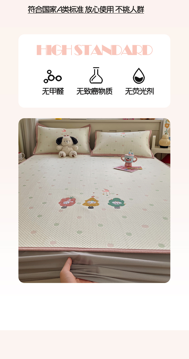 商品名称:帅露家纺 2026新款A类PE中分子卡通大版绣花软凉席席子 床笠款-粉屿森林