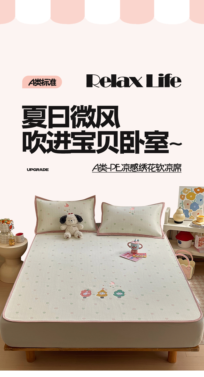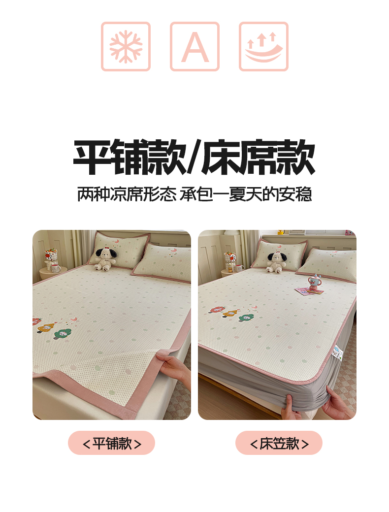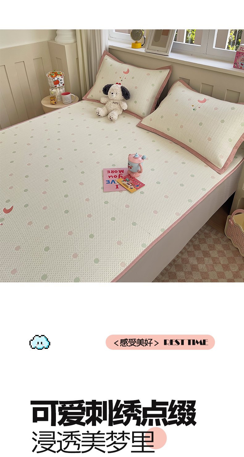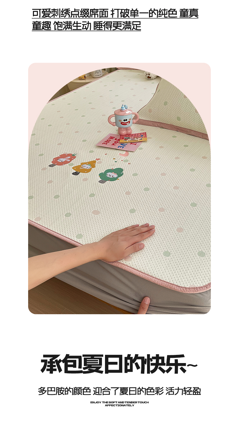 (总)帅露家纺 2026新款A类PE中分子卡通大版绣花软凉席席子,床笠款-波点日记,床笠款-粉屿森林,床笠款-蓝调企鹅,床笠款-懒懒兔,床笠款-星月织梦,平铺款-波点日记,平铺款-粉屿森林,平铺款-蓝调企鹅,平铺款-懒懒兔,平铺款-星月织梦