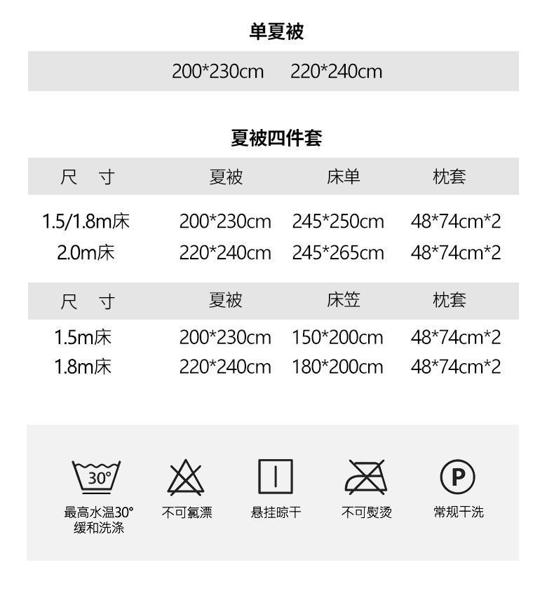 200*230cm夏被1.5笠四件套 | ¥230.00 |