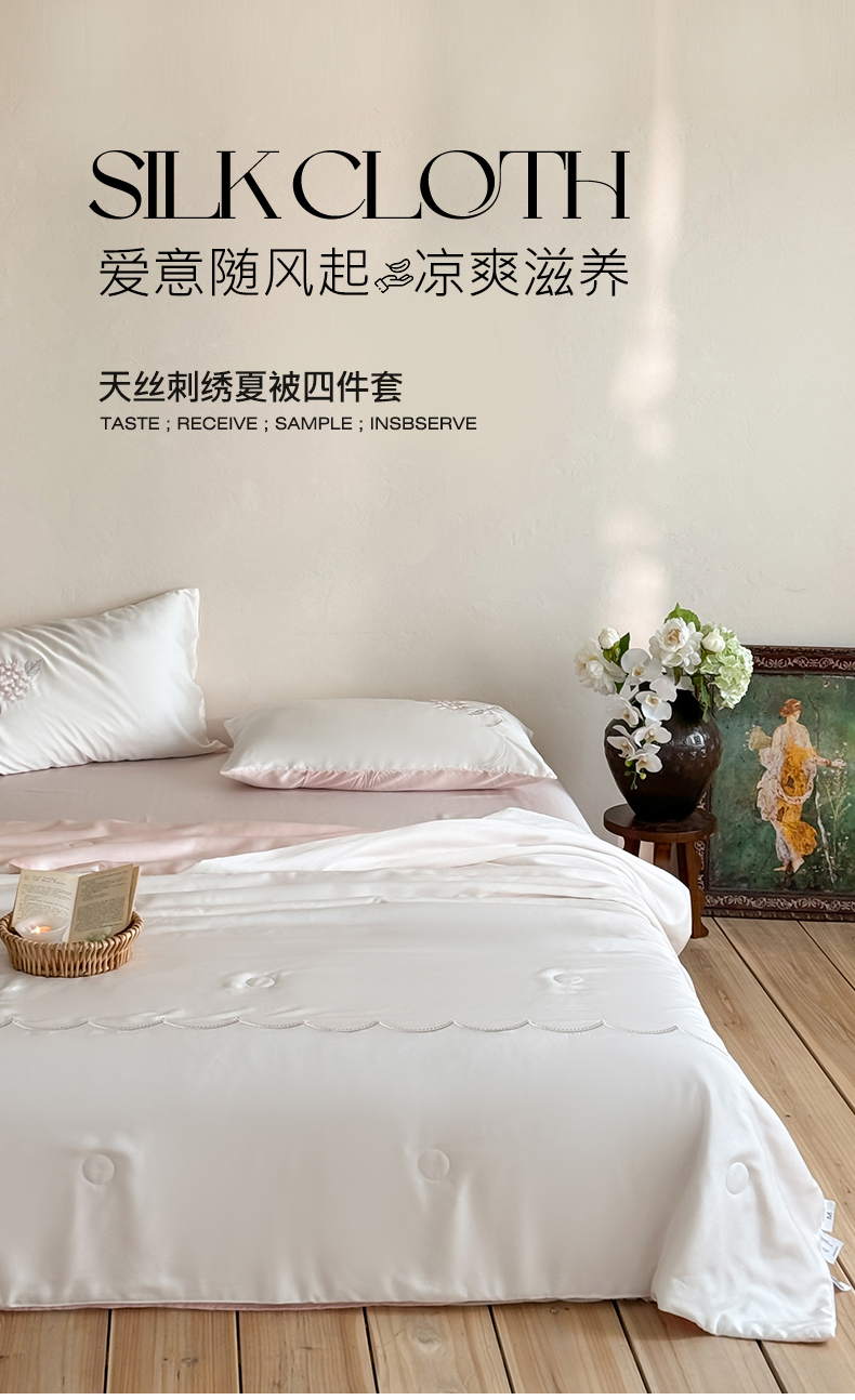 当前位置: 91家纺网 > 商品网购 > 床品套件 > 四件套 > 夏被四件套 > 极简 2026新款天丝刺绣夏被四件套-柔花束影 组合